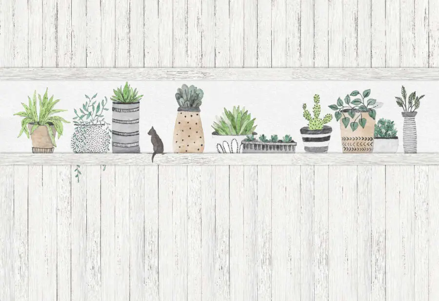 Bring a touch of nature inside with the “Row of Potted Plants” wall mural. Imagine stepping into a cozy nook where these stylish pots house your favorite greens—without the worry of overwatering! The soothing colors and playful designs create a backdrop that whispers relaxation. Picture sipping coffee while the kid or the cat plays next to this mural; it practically feels alive. It’s like inviting a garden into your home, minus the dirt on your shoes. Perfect for any room needing a splash of cheer, it’s a vibe that says, “Hey, let’s chill and grow together.”