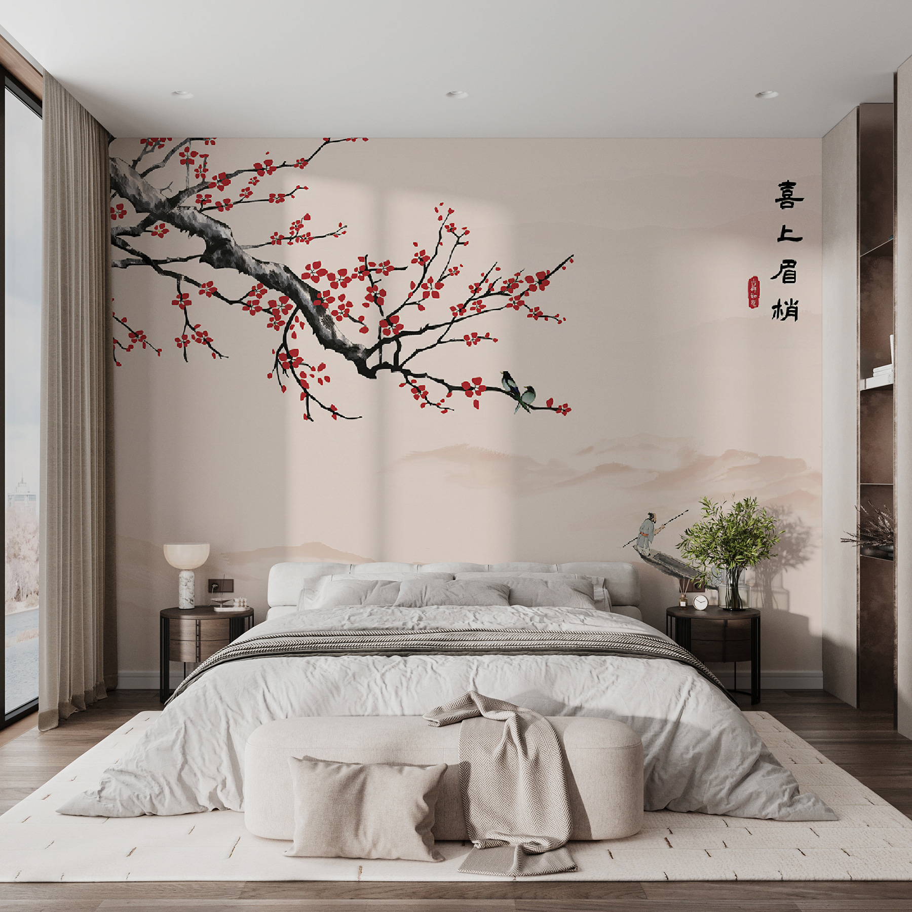 Ożyw swoją przestrzeń dzięki tej fototapecie ściennej “Gałąź drzewa z czerwonymi kwiatami”! Wyobraź sobie, że budzisz się z tym widokiem – eleganckie gałęzie sięgające przez ścianę, wypełnione jaskrawoczerwonymi kwiatami. To tak, jakby dotyk natury pocałował twój pokój podczas snu. Idealna do salonu, sypialni, a nawet przytulnego kącika do czytania.