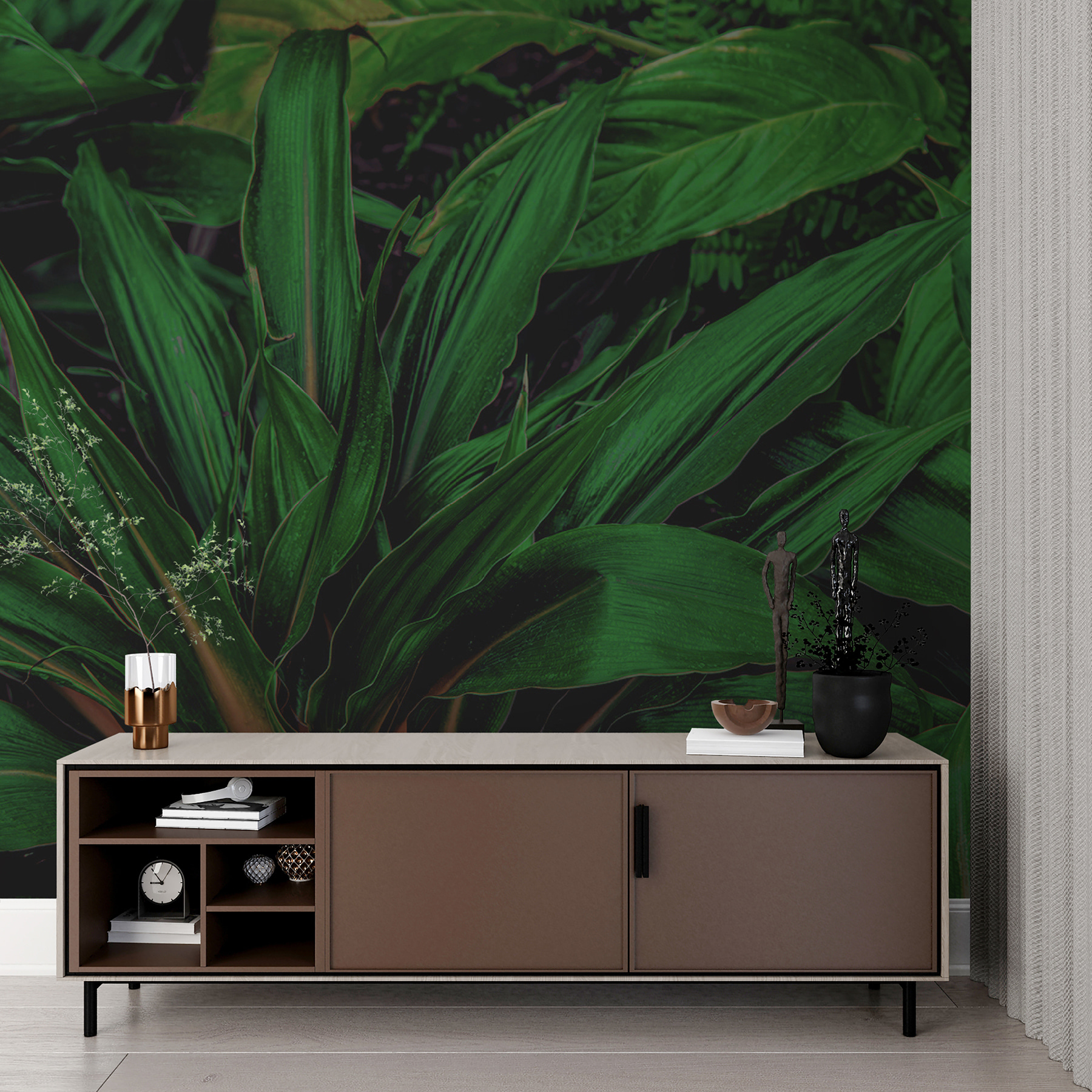 To nie tylko tapeta, to oświadczenie. Wchodząc do pokoju ozdobionego tą fototapetą, witasz się z poczuciem spokoju i przygody – jak mini-wakacje każdego dnia. Niezależnie od tego, czy znajduje się w salonie, biurze, czy nawet łazience, ten wzór przekształca przestrzenie w zielone ucieczki. Warstwowe liście dodają głębi i tekstury, tworząc efekt 3D, który jest niemal namacalny. Prawdopodobnie złapiesz się na tym, że będziesz chciał dotknąć tych liści więcej niż raz!