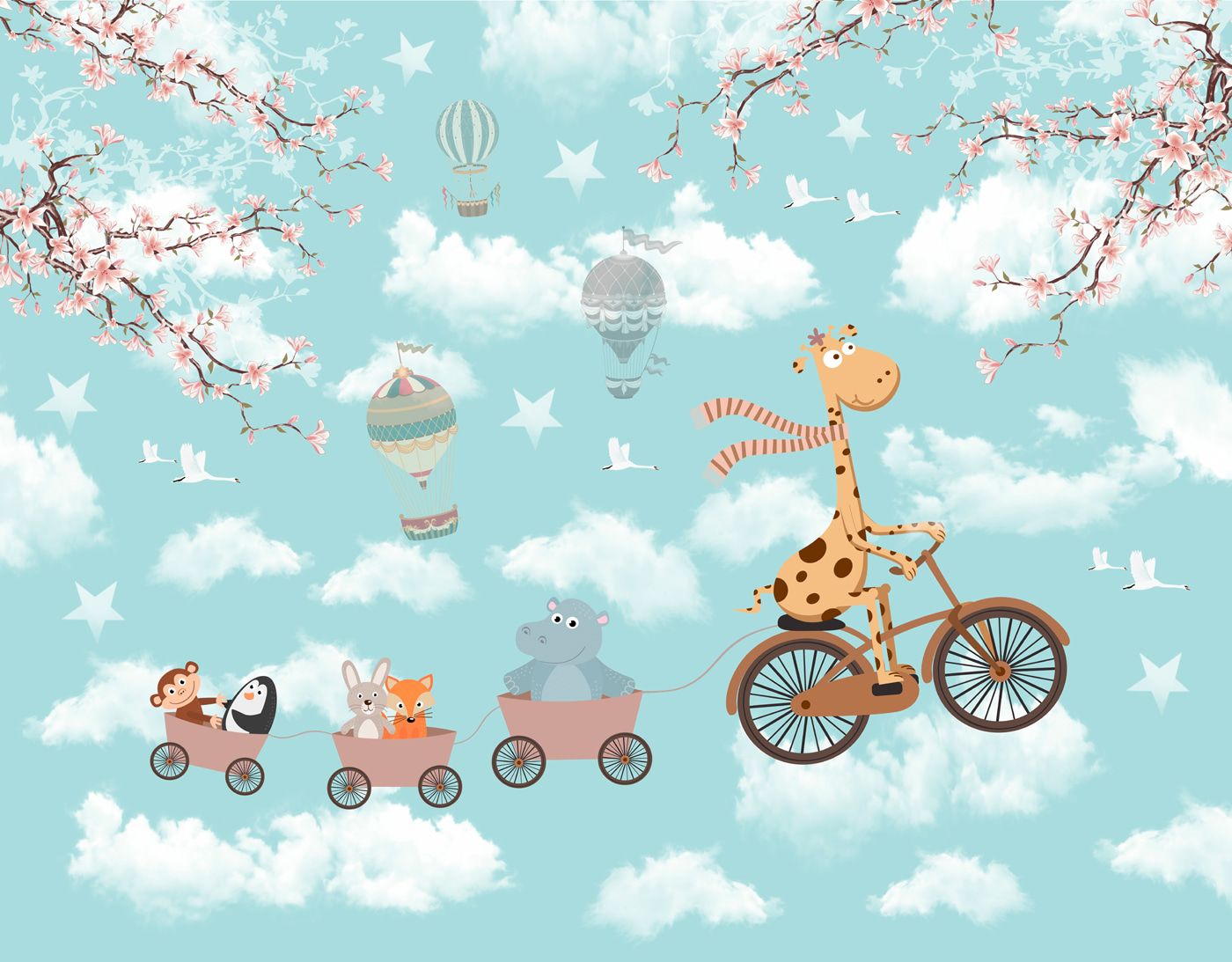 Wyobraź sobie tę zachwycającą fototapetę “Hot Air Balloon in the Sky”, która rozjaśni pokój Twojego dziecka. To jak wejście do sennej bajki! Miękkie błękitne niebo wypełnione kapryśnymi balonami na gorące powietrze i zabawnymi zwierzętami pedałującymi na rowerze – urocze, prawda? Idealny do pokoju dziecięcego lub pokoju zabaw, z pewnością pobudzi wyobraźnię, a może nawet kilka chichotów. Wyobraź sobie swojego malucha śledzącego palcem balony na ogrzane powietrze, z oczami szeroko otwartymi ze zdumienia… a zwierzęta, ojej! Żyrafa jeżdżąca na rowerze? To rodzaj uroku, który sprawia, że bajki na dobranoc ożywają. Do tego te gałęzie kwitnącej wiśni – dodają odrobinę naturalnego spokoju. Niezależnie od tego, czy urządzasz pokój dziecięcy, czy dekorujesz przestrzeń dla dziecka, ta fototapeta przyniesie radość i odrobinę marzycielskiej przygody. Idealna do tworzenia cennych wspomnień z dzieciństwa!