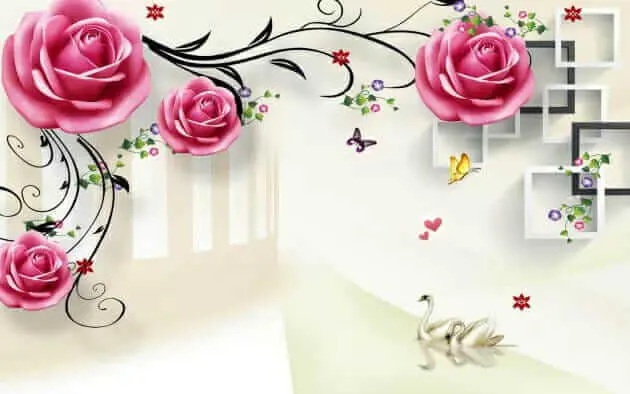 Wyobraź sobie, że codziennie budzisz się z widokiem na tę hipnotyzującą fototapetę – to jak wejście do sennego ogrodu! Łabędzie z gracją płynące pod kwitnącymi różowymi różami, z motylami fruwającymi wokół, nadają przestrzeni odrobinę spokojnej magii. Idealny dla każdego, kto chce przenieść kawałek natury do wnętrza z odrobiną elegancji. A te róże – wyglądają, jakby można było je dotknąć!