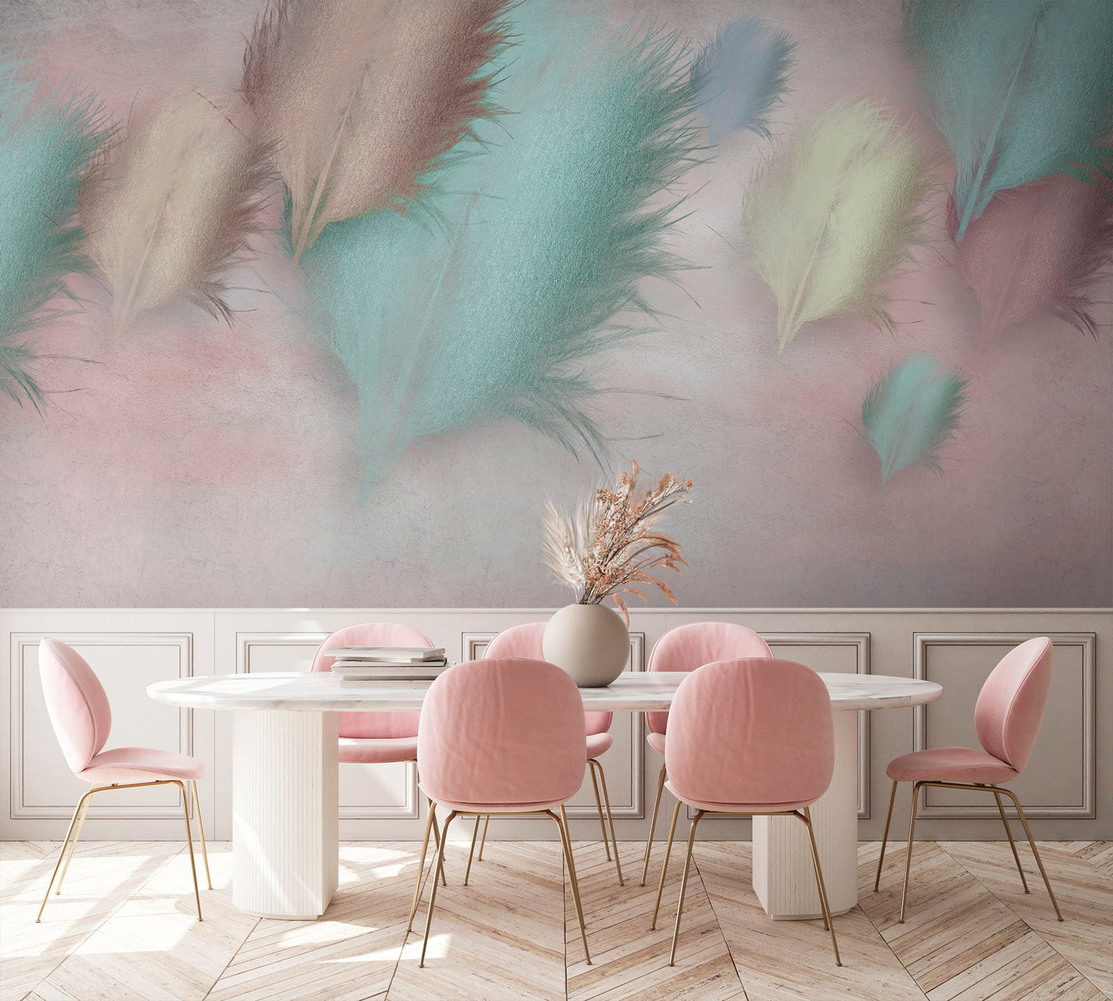 Zmień każde pomieszczenie w przytulne miejsce dzięki tej bajkowej fototapecie „Grupa piór na różowym tle”. To jak otulenie przestrzeni delikatną, pastelową ramą. Każde piórko tańczy lekko na różowym płótnie, przywołując na myśl delikatną bryzę i leniwe popołudnia. Wyobraź sobie, że popijasz herbatę lub kawę, rozkoszując się spokojną atmosferą – a może nawet wyobrażając sobie głębokie rozmowy ze ścianą. Idealny do pokoju dziecięcego, salonu lub każdego innego miejsca, w którym potrzebna jest odrobina spokoju. Ta fototapeta to nie tylko dekoracja, to mała ucieczka w zaciszu własnego domu!