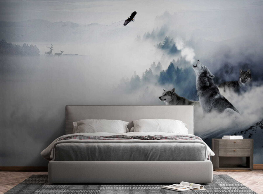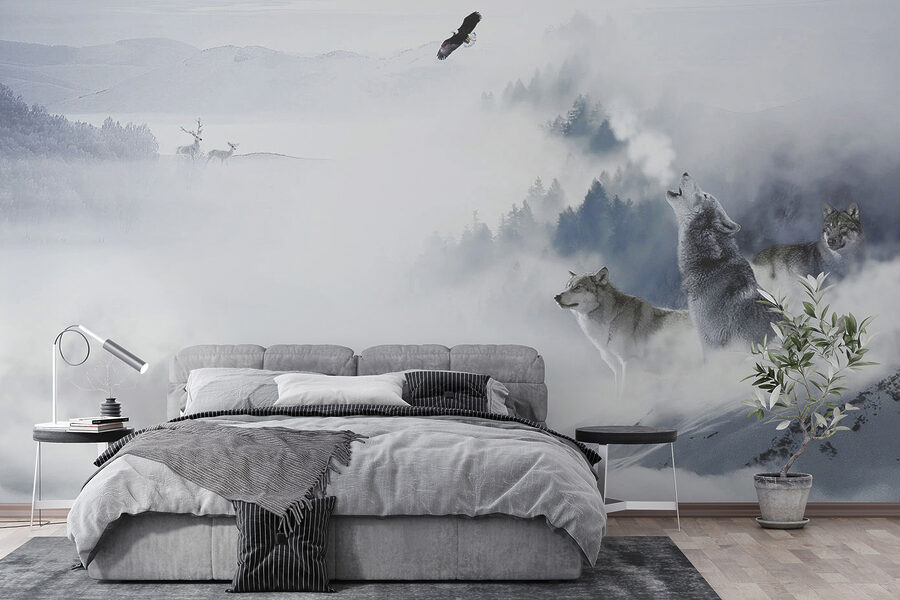 Odmień swoją przestrzeń dzięki tej urzekającej fototapecie przedstawiającej wilka stojącego majestatycznie na śniegu. Wyobraź sobie, że wchodzisz do pokoju, w którym otacza cię nieokiełznany duch natury – ta fototapeta właśnie to robi! Delikatne odcienie i spokojne tło mroźnych krajobrazów zachęcają do marzeń o śnieżnych spacerach i rześkim powietrzu. Wyobraź sobie zwinięcie się w kłębek z dobrą książką, szmer dzikiej przyrody na wyciągnięcie ręki. To tak, jakby mieć kawałek dzikiej przyrody w swoim domu, szepcząc sekrety wspaniałej przyrody. Przyciąga wzrok i może zainspirować do własnych wilczych szeptów! Idealny dla miłośników przyrody lub każdego, kto chce dodać dziki akcent do swojego wystroju.