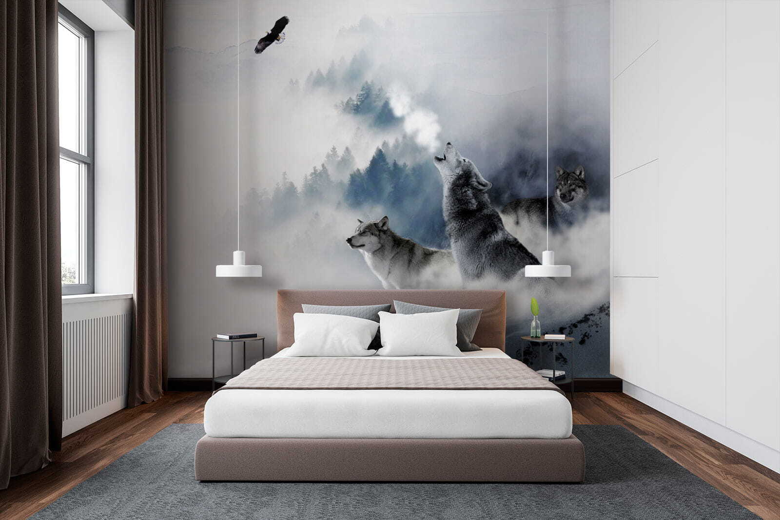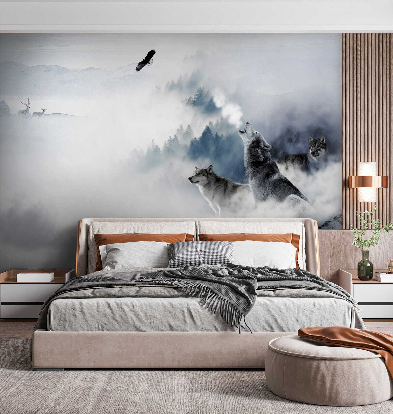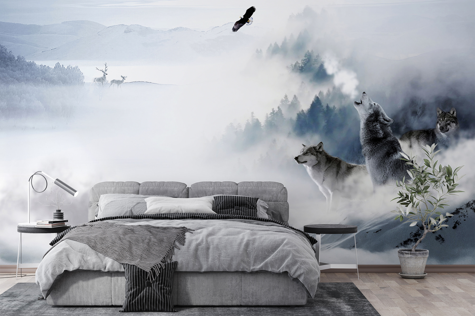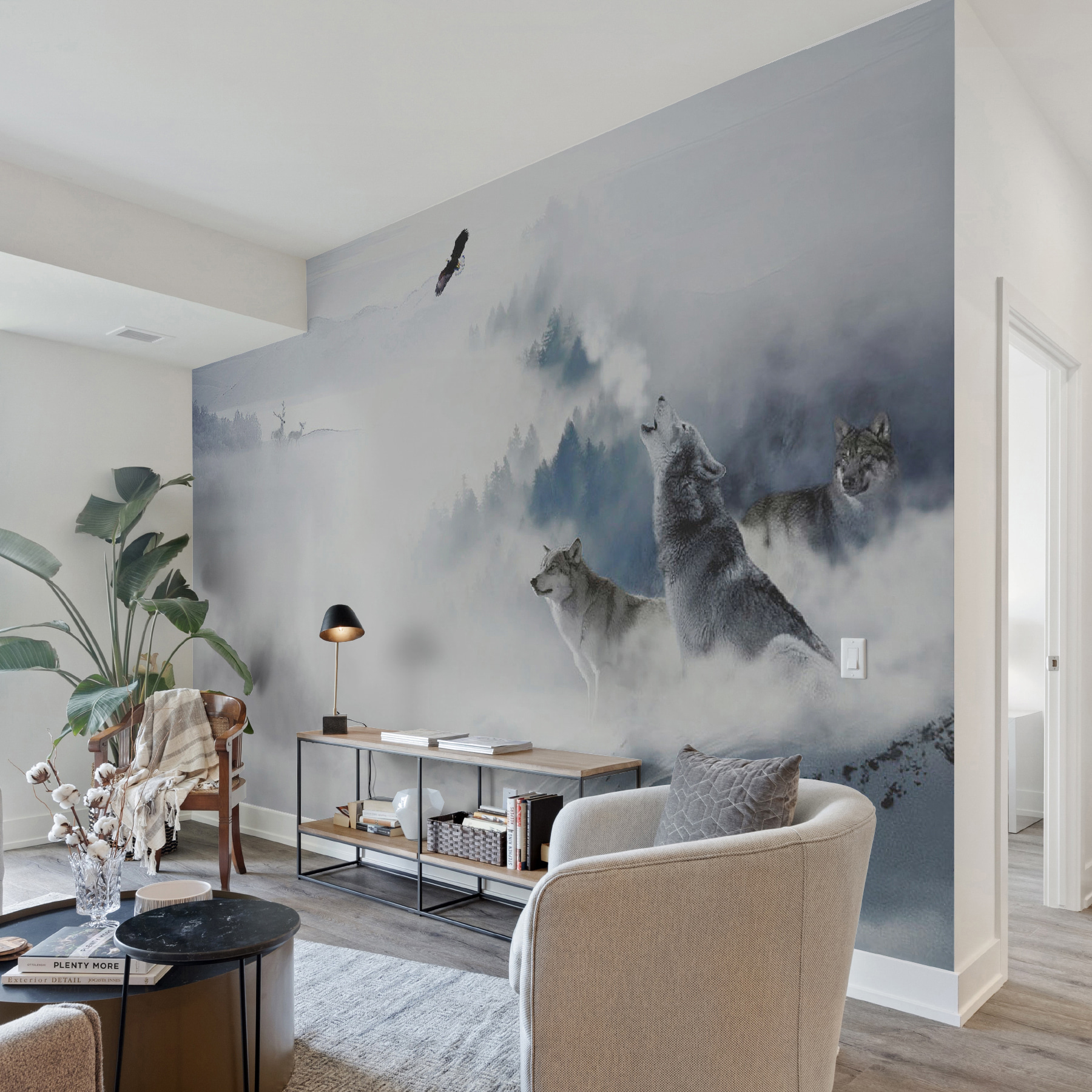 Odmień swoją przestrzeń dzięki tej urzekającej fototapecie przedstawiającej wilka stojącego majestatycznie na śniegu. Wyobraź sobie, że wchodzisz do pokoju, w którym otacza cię nieokiełznany duch natury – ta fototapeta właśnie to robi! Delikatne odcienie i spokojne tło mroźnych krajobrazów zachęcają do marzeń o śnieżnych spacerach i rześkim powietrzu. Wyobraź sobie zwinięcie się w kłębek z dobrą książką, szmer dzikiej przyrody na wyciągnięcie ręki. To tak, jakby mieć kawałek dzikiej przyrody w swoim domu, szepcząc sekrety wspaniałej przyrody. Przyciąga wzrok i może zainspirować do własnych wilczych szeptów! Idealny dla miłośników przyrody lub każdego, kto chce dodać dziki akcent do swojego wystroju.