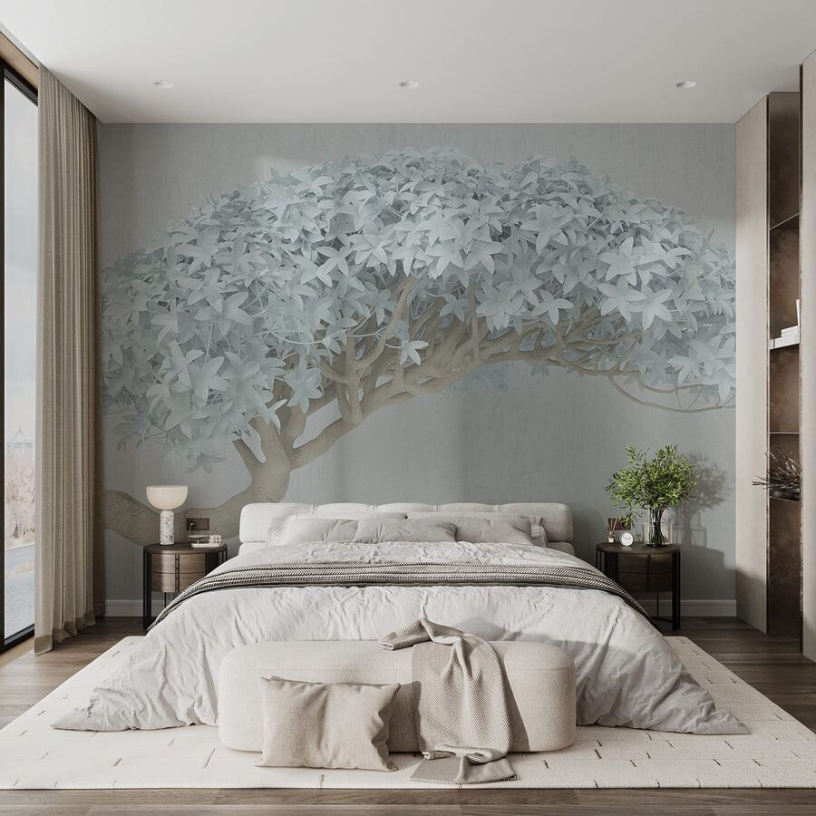 Wyobraź sobie spacer po galerii sztuki i natknięcie się na spokojną, senną scenę uchwyconą idealnie – drzewo z delikatnymi, białymi liśćmi, pozornie unoszące się ze ściany. Taki właśnie klimat wnosi do pomieszczenia ta fototapeta “Abstrakcyjne drzewo z białymi liśćmi”. To tak, jakby mieć kawałek delikatnego snu bezpośrednio na ścianie.