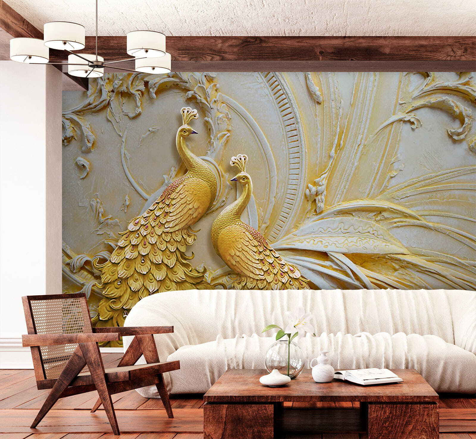 Odmień swoją przestrzeń dzięki urokowi eleganckich pawi w misternej płaskorzeźbie. Ta fototapeta to nie tylko dekoracja ścienna, ale także sposób na rozpoczęcie rozmowy. Wyobraź sobie, że wchodzisz do pokoju i czujesz się natychmiast przeniesiony do spokojnego ogrodu. Te pierzaste piękności zdają się tańczyć, wnosząc ciepło i osobowość na ściany. Delikatne odcienie dodają odrobinę spokoju, dzięki czemu idealnie nadają się do przytulnego salonu lub spokojnej sypialni. Każde spojrzenie na fototapetę może zainspirować marzenia o egzotycznych podróżach lub leniwych popołudniach popijając herbatę. To jak posiadanie dzieła sztuki, które tchnie życie w codzienną rutynę. Któż nie chciałby obudzić się z tak zachwycającym widokiem?