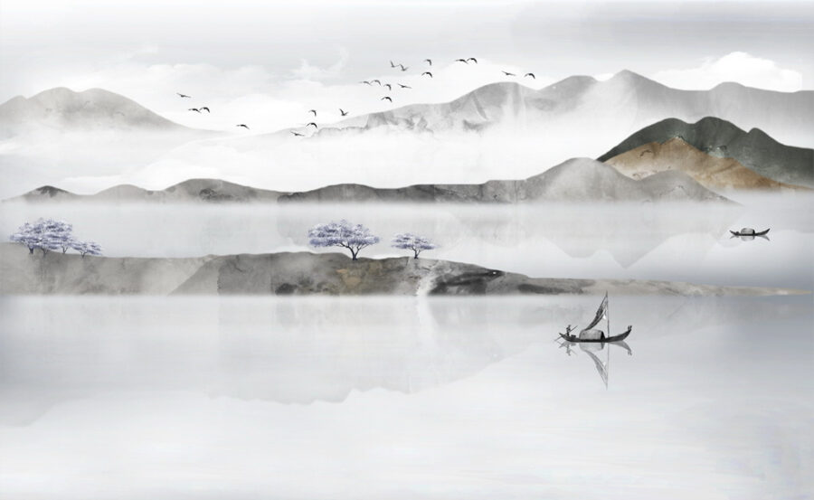 Oto fototapeta, która sprawi, że poczujesz się, jakbyś unosił się w spokojnej krainie snów. Wyobraź sobie, że popijasz poranną kawę, wpatrując się w tę uspokajającą scenę samotnej łodzi dryfującej po lustrzanym jeziorze, otoczonej zamglonymi górami. Ach, ten spokój… Możesz po prostu zapomnieć, że jesteś w swoim salonie! Ma ten czarujący, zenowy klimat, który wciąga – jakby góry i łódź chciały wyszeptać ci swoje sekrety. Idealny dla osób pragnących odrobiny ciszy lub artystycznej inspiracji w swojej przestrzeni. Można niemal poczuć delikatny szum drzew lub delikatne falowanie wody… Oddychaj, zrelaksuj się, a może nawet zatrać się w myślach. Kto wie? Nagle Twój dom przestanie być tylko domem – stanie się spokojnym azylem.