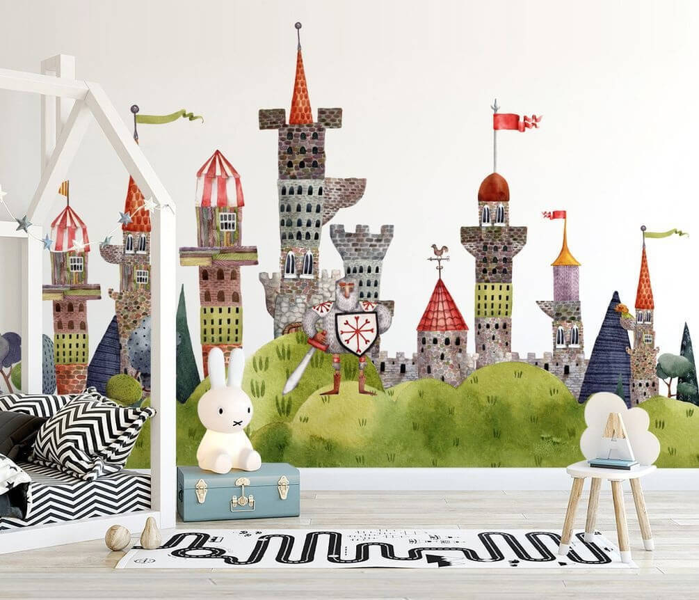 Wyobraź sobie swojego malucha budzącego się każdego ranka w swoim własnym średniowiecznym królestwie! Dzielny rycerz z mieczem w dłoni, stojący na straży wież zamkowych; to tak, jakby mieć strażnika swoich snów. A te wieże… spójrz na te dziwaczne, kolorowe dachy! Wyglądają jak wyjęte prosto z bajki.