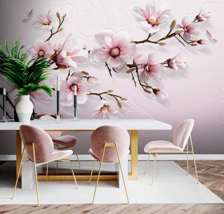 Sprawdź tę oszałamiającą fototapetę – różowe magnolie na eleganckich gałęziach. Poważnie, to coś więcej niż zwykła tapeta… to jak przeniesienie kawałka wiosny prosto do salonu! Delikatne różowe kwiaty wyglądają tak realistycznie, że aż chce się je dotknąć. Wyobraź sobie, że budzisz się z tym każdego dnia – totalna błogość! Ma również efekt 3D, więc można poczuć się jak w botanicznej krainie czarów. Idealny dla miłośników natury i każdego, kto kocha kwiatowe klimaty. Ożyw swoją przestrzeń – przygotuj się na komplementy od przyjaciół i rodziny!