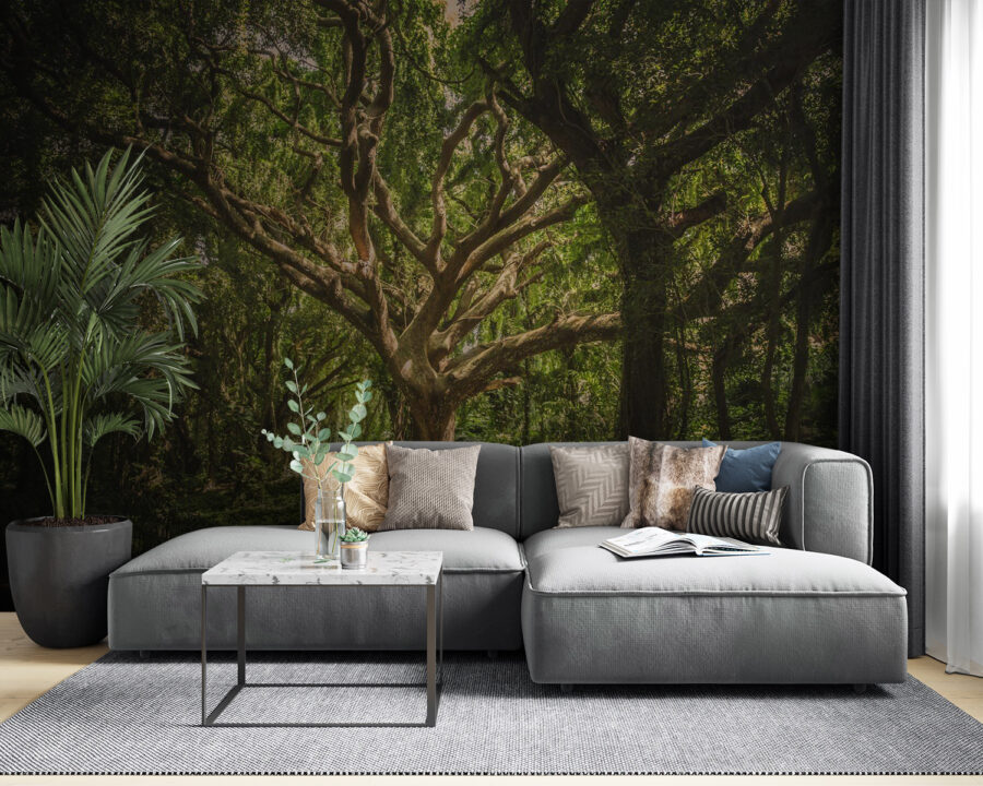Zmień dowolną przestrzeń w spokojną przystań dzięki tej oszałamiającej fototapecie przedstawiającej okazałe drzewo położone w bujnym lesie. Bogate odcienie zieleni i ziemiste brązy wprowadzają poczucie spokoju, sprawiając, że nawet najmniejsze pomieszczenia wydają się ciepłym uściskiem natury. Wyobraź sobie, że budzisz się i witają Cię delikatnie kołyszące się liście, niczym naturalna impreza taneczna. Idealna do przytulnych zakątków lub domowych biur, ta fototapeta szepcze: „Zrelaksuj się, jesteś w lesie!”. Ponadto jest to świetny sposób na wprowadzenie elementu natury do wnętrza – bez konieczności zmagania się z komarami. Podnieś standard swoich ścian i pozwól swoim dekoracjom oddychać!