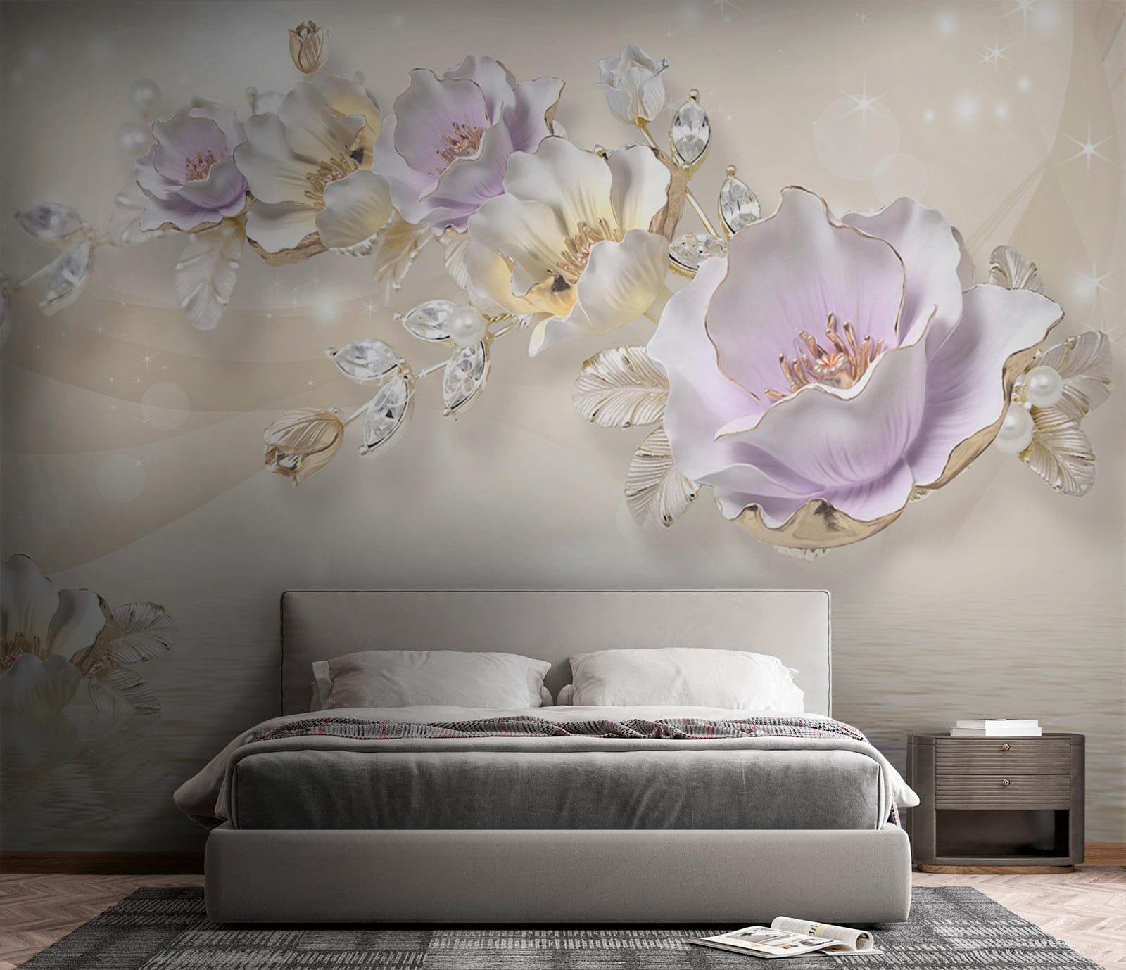 Odmień swoją przestrzeń dzięki tej oszałamiającej fototapecie ściennej z delikatnymi kwiatami i czarującymi akcentami. Wyobraź sobie, że wchodzisz do pokoju, w którym otacza cię piękno kwiatów, tworząc spokojną ucieczkę. Delikatne kolory przynoszą ciepło, idealne do rozbudzenia radości w ponury dzień. To jak posiadanie ogrodu bezpośrednio na ścianie, bez konieczności posiadania zielonego kciuka. A błyszczące wskazówki dodają tylko szeptu uroku, sprawiając, że czujesz się jak sekretny skarb. Idealny do przytulnego kącika do czytania lub spokojnej sypialni, z pewnością wywoła uśmiech na twarzy każdego. Trochę natury, dużo stylu – kto mógłby się oprzeć?