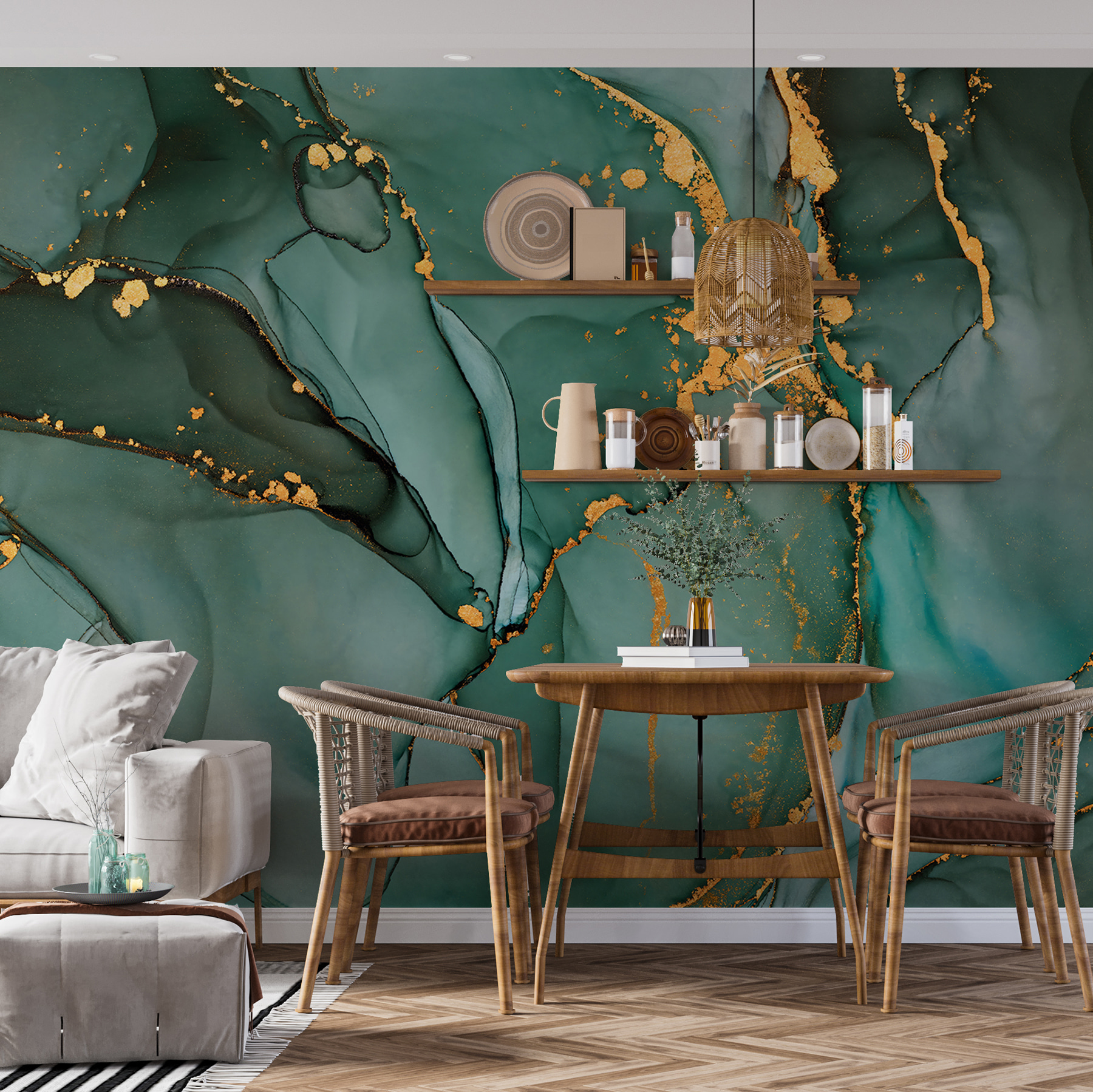 Ta fototapeta jest nie tylko ładna, ale jest jak wejście do spokojnego lasu za każdym razem, gdy wchodzisz do pokoju. Zmienia ona zwykłą ścianę w wyrazisty element – “Spójrz na mnie!”, ale w najbardziej gustowny sposób. Znajomi będą oszołomieni… i może trochę zazdrośni. Ta urzekająca mieszanka kolorów sprawi, że nie będziesz mógł się doczekać relaksu w domu.