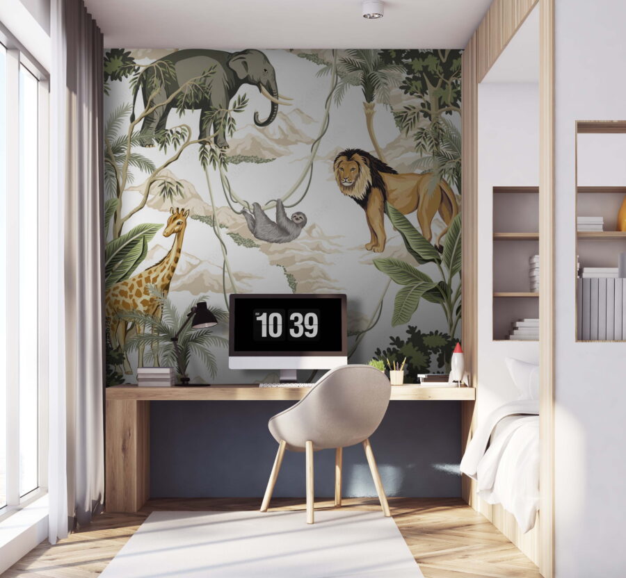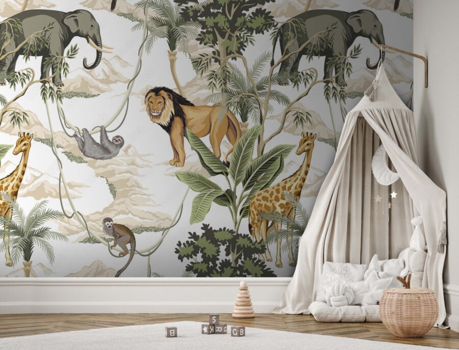 Zmień pokój w dżunglę dzięki tej żywej fototapecie. Wyobraź sobie, że popijasz kawę, podczas gdy lew spokojnie obserwuje wszystko, a leniwiec powoli przybija Ci piątkę. Żyrafy zaglądają do środka, a słonie dodają majestatu – trudno nie poczuć dzikiej inspiracji! Idealna do przytulnych zakątków lub ścian, które potrzebują trochę życia. Wyobraź sobie historie, które opowie – Twoi goście będą czuli się jak odkrywcy za każdym razem, gdy wejdą do tego pomieszczenia. Wprowadź do domu atmosferę natury, bez komarów!