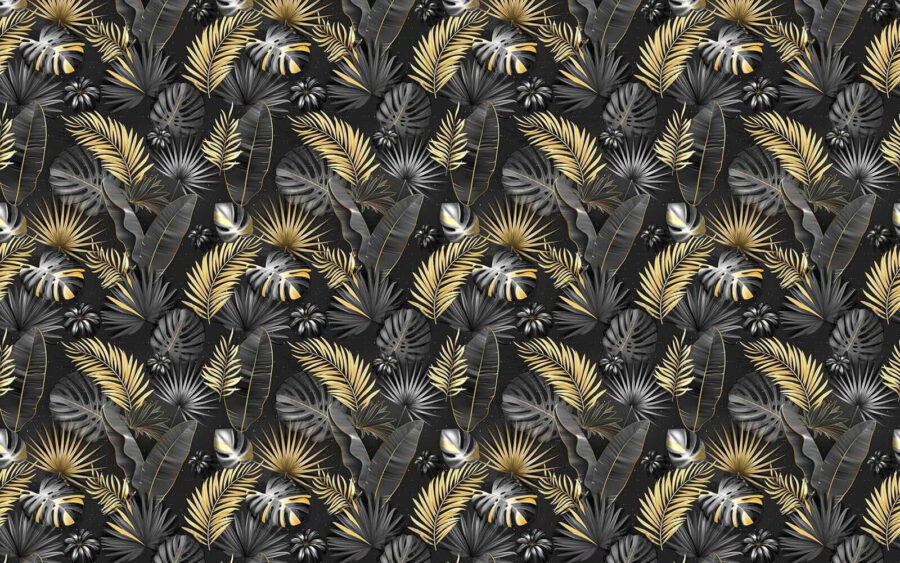 Przekształć każde pomieszczenie w bujną oazę dzięki tej eleganckiej fototapecie z tropikalnymi liśćmi. Wyobraź sobie, że wkraczasz do spokojnej dżungli – bogate wzory i odważne liście tworzą atmosferę, która jest zarówno urzekająca, jak i uspokajająca. Uderzające czarne tło sprawia, że te żywe liście wyglądają, jakby machały na powitanie.