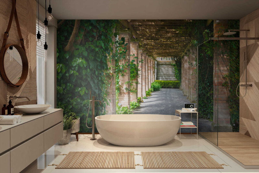 Czy kiedykolwiek marzyłeś o sekretnym ogrodzie w swoim salonie? Ta fototapeta “Rząd filarów porośniętych winoroślą” jest jak wejście do spokojnej botanicznej przystani. Wyobraź sobie, że relaksujesz się na kanapie i czujesz się, jakbyś wędrował po tej liściastej ścieżce, której filary otulone są bujną zielenią. Fototapeta jest idealna do dodania głębi i odrobiny natury do każdej przestrzeni – twoje pomieszczenie natychmiast stanie się bardziej przestronne.