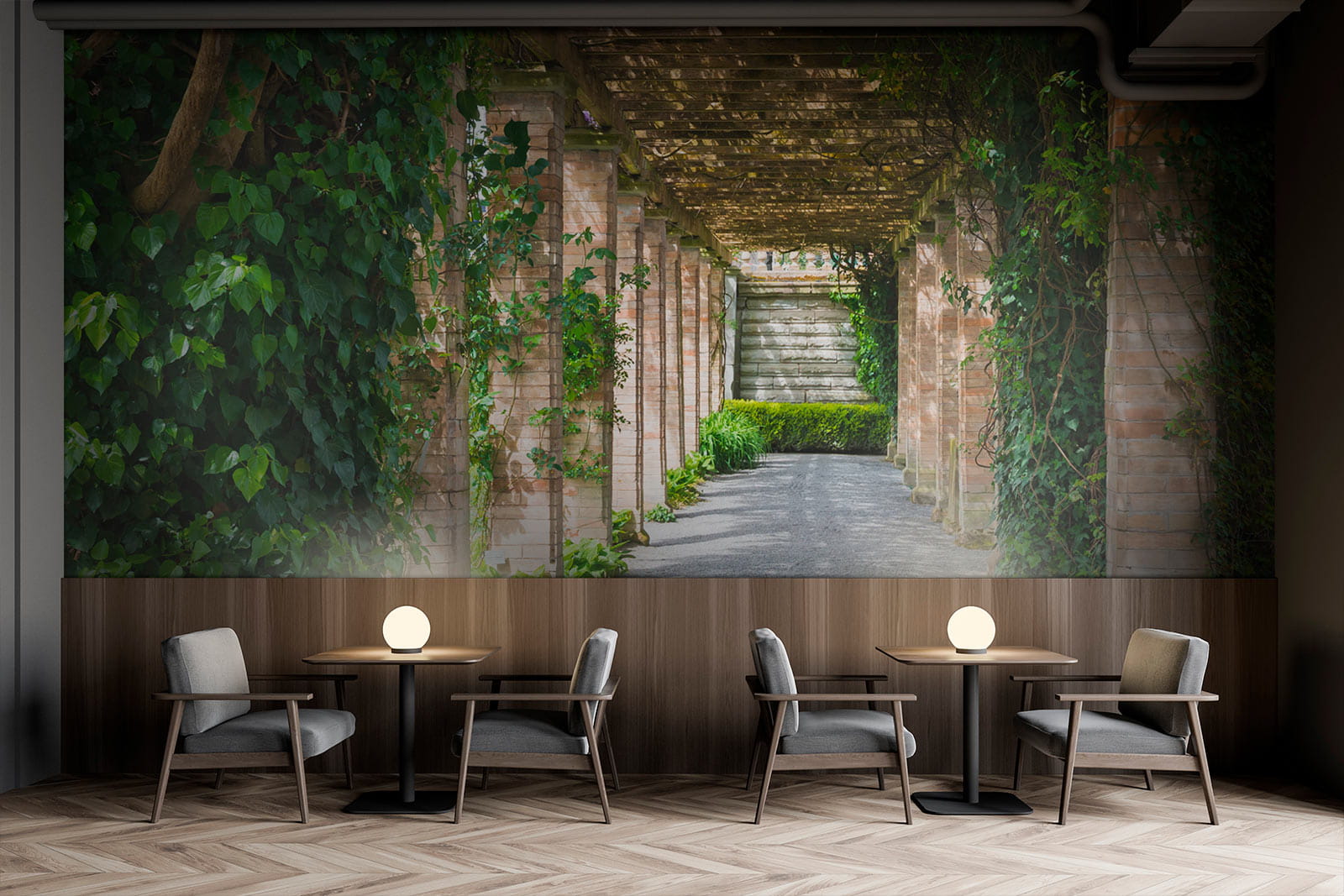 Czy kiedykolwiek marzyłeś o sekretnym ogrodzie w swoim salonie? Ta fototapeta “Rząd filarów porośniętych winoroślą” jest jak wejście do spokojnej botanicznej przystani. Wyobraź sobie, że relaksujesz się na kanapie i czujesz się, jakbyś wędrował po tej liściastej ścieżce, której filary otulone są bujną zielenią. Fototapeta jest idealna do dodania głębi i odrobiny natury do każdej przestrzeni – twoje pomieszczenie natychmiast stanie się bardziej przestronne.