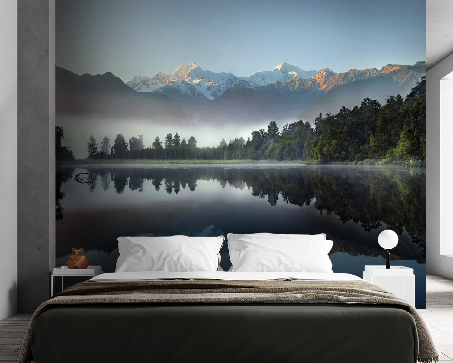 Imagine stepping into a tranquil lakeside escape, all without leaving home. This wall mural brings the serene beauty of nature to life with a stunning reflection of trees and majestic mountains. Picture yourself sipping coffee, blissfully transported to a peaceful morning by the water. The vibrant hues dance gently in the light, making even Monday feel like a vacation. It’s like nature’s calling you, whispering sweet nothings about relaxation and fresh air. Whether it’s in a living room or a cozy nook, this mural invites warmth and a touch of wild beauty into any space. Who knew walls could be so refreshing?