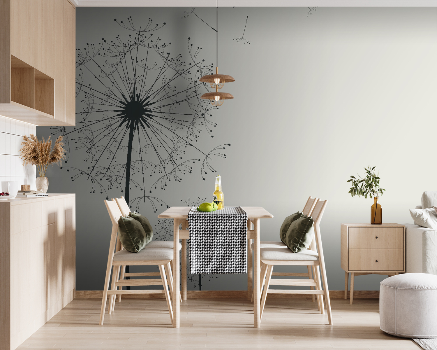 Wyobraź sobie, że wkraczasz do przestrzeni, w której delikatne dmuchawce kołyszą się łagodnie na wietrze. Ta fototapeta „Delikatne nasiona unoszone przez wiatr” urzeczywistnia to marzenie. Dzięki eleganckim liniom i lekkości przekształca ściany w oazę spokoju.