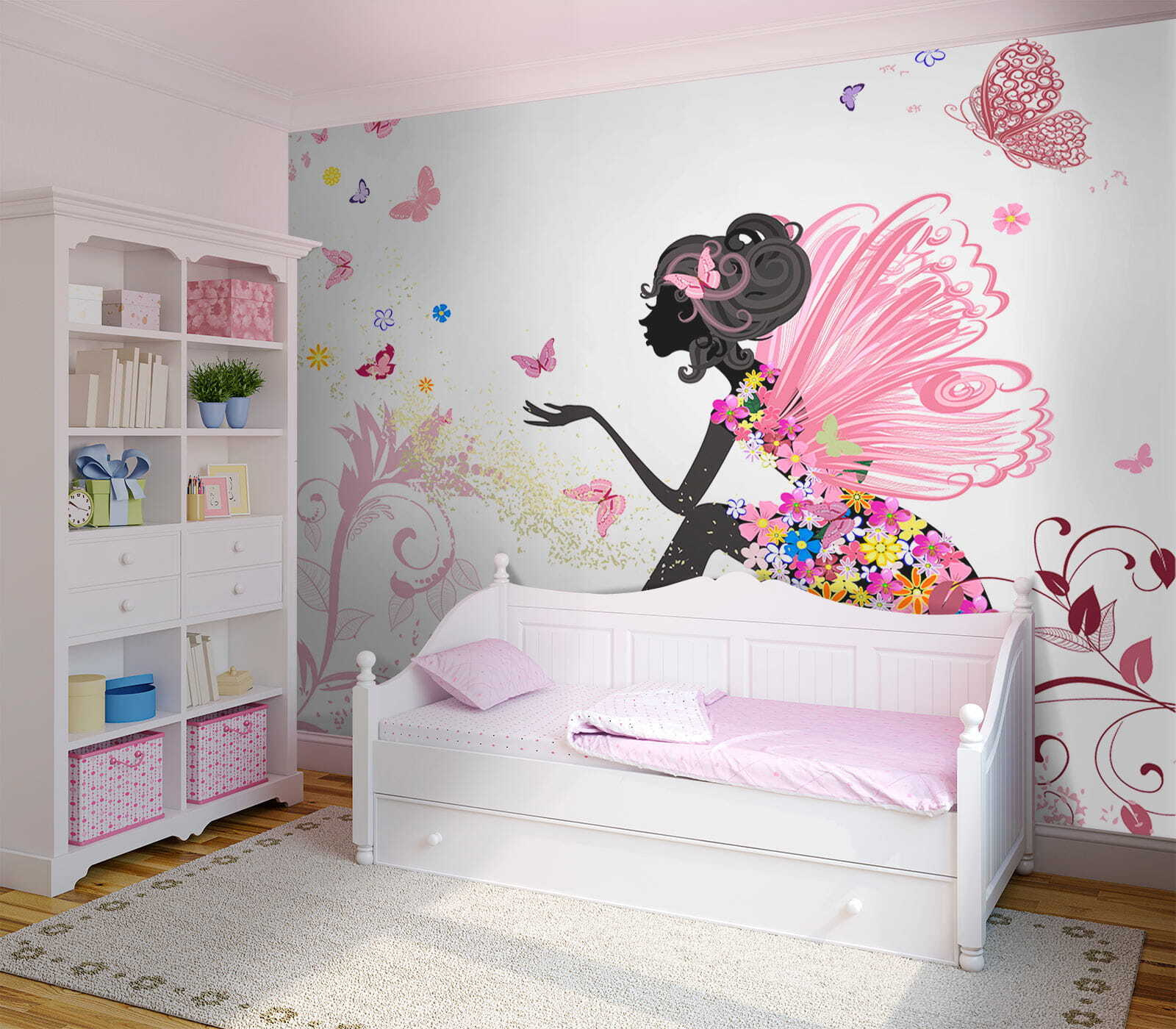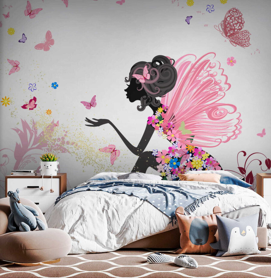 Ta czarująca fototapeta “Profil kobiety z motylem we włosach” jest idealnym akcentem do pokoju Twojego dziecka. Wyobraź sobie oszałamiającą sylwetkę kobiety z gracją otoczoną trzepoczącymi motylami, jakby była w sekretnym ogrodzie. Delikatne róże i kapryśne kwiaty dodają odrobinę magii – to tak, jakby mieć bajkę na ścianie!
