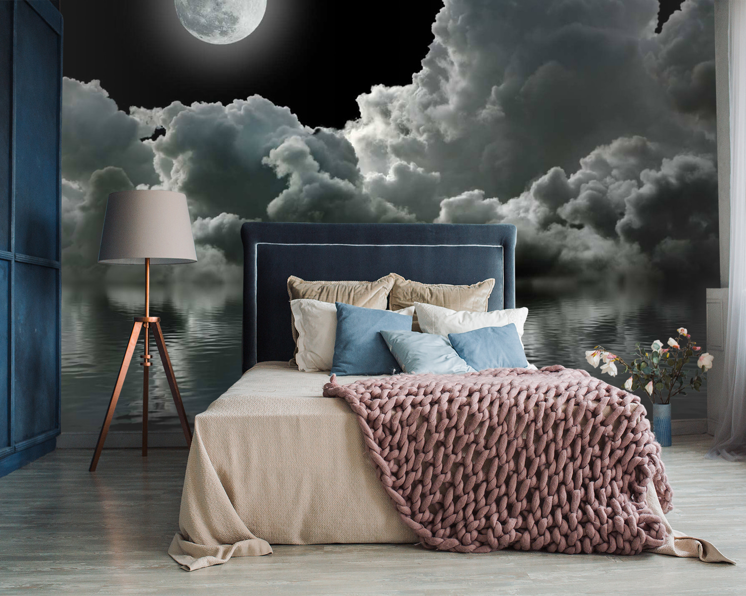 Transform any room into a dreamy escape with this stunning mural featuring the moon over water, draped in fluffy clouds. It’s like bringing a piece of the night sky indoors! Imagine lounging on the couch, sipping tea, with this serene view greeting you. The soft reflections in the water draw the eyes in, creating a peaceful vibe, perfect for winding down after a long day. Plus, who doesn’t love a moonlit scene that makes you feel a little poetic? Guests might even ask if they’ve stumbled into a cozy art gallery—how cool is that? This mural isn’t just decor; it’s a scene that invites daydreams, whispers stories, and adds a slice of charm to your space.