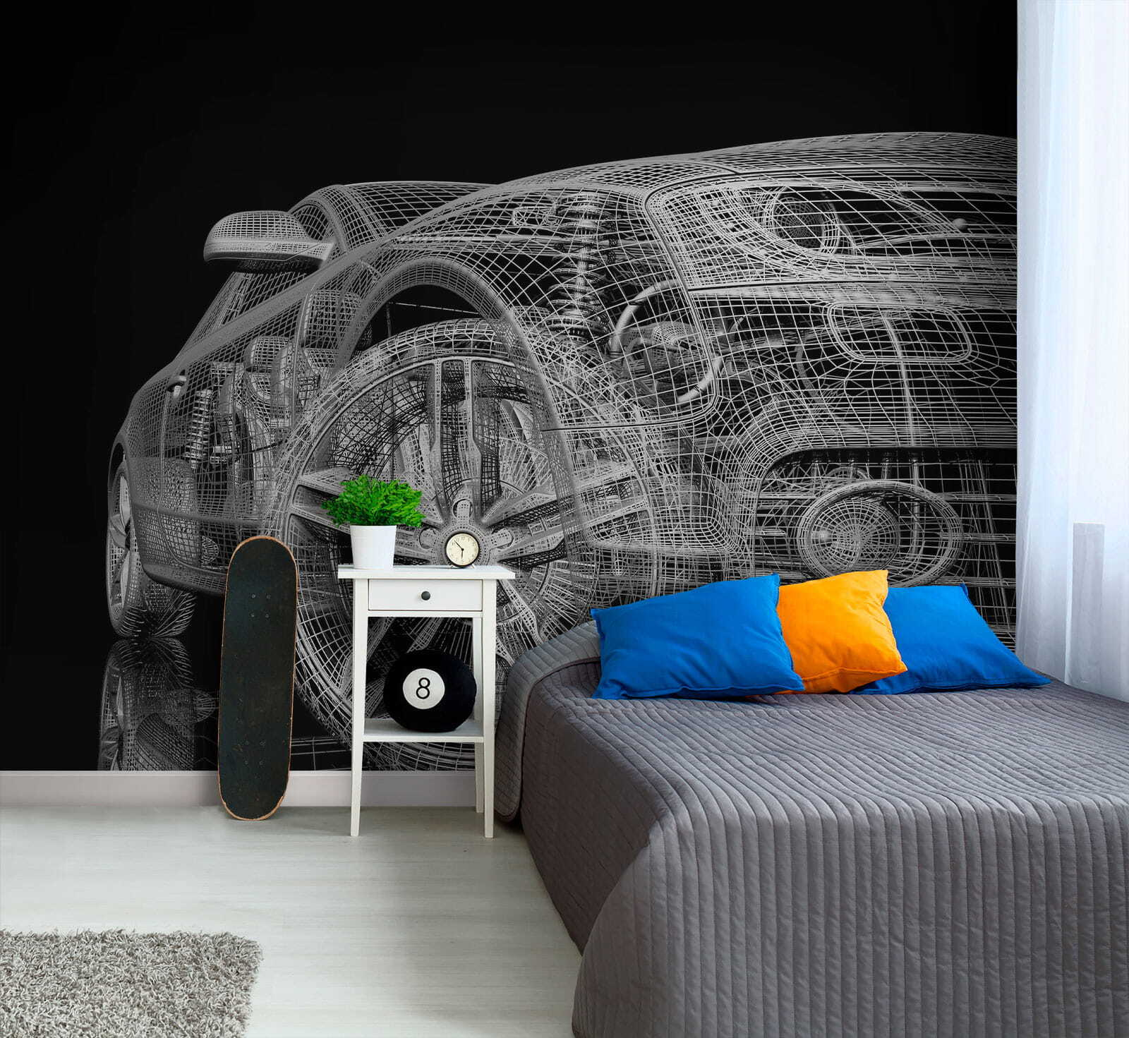 Wyobraź sobie, że budzisz się i każdego dnia wita Cię ta super elegancka, futurystyczna fototapeta z samochodami. To jak wejście na plan filmu science-fiction, ale bezpośrednio w salonie lub sypialni małego entuzjasty motoryzacji. Poważnie, to nie jest zwykła grafika ścienna – to cyfrowy design w połączeniu z nowoczesnym arcydziełem.