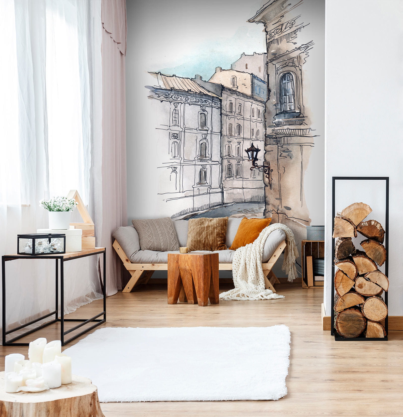 Te stonowane błękity i brązy pięknie komponują się zarówno z nowoczesnym, jak i rustykalnym wystrojem. Umieść wygodny fotel w pobliżu i masz idealną małą ucieczkę – nawet bez wychodzenia z domu! W tej scenerii jest po prostu coś zachęcającego. To tak, jakby ulica wzywała cię do wędrówki i zachwytu. Po prostu piękne.