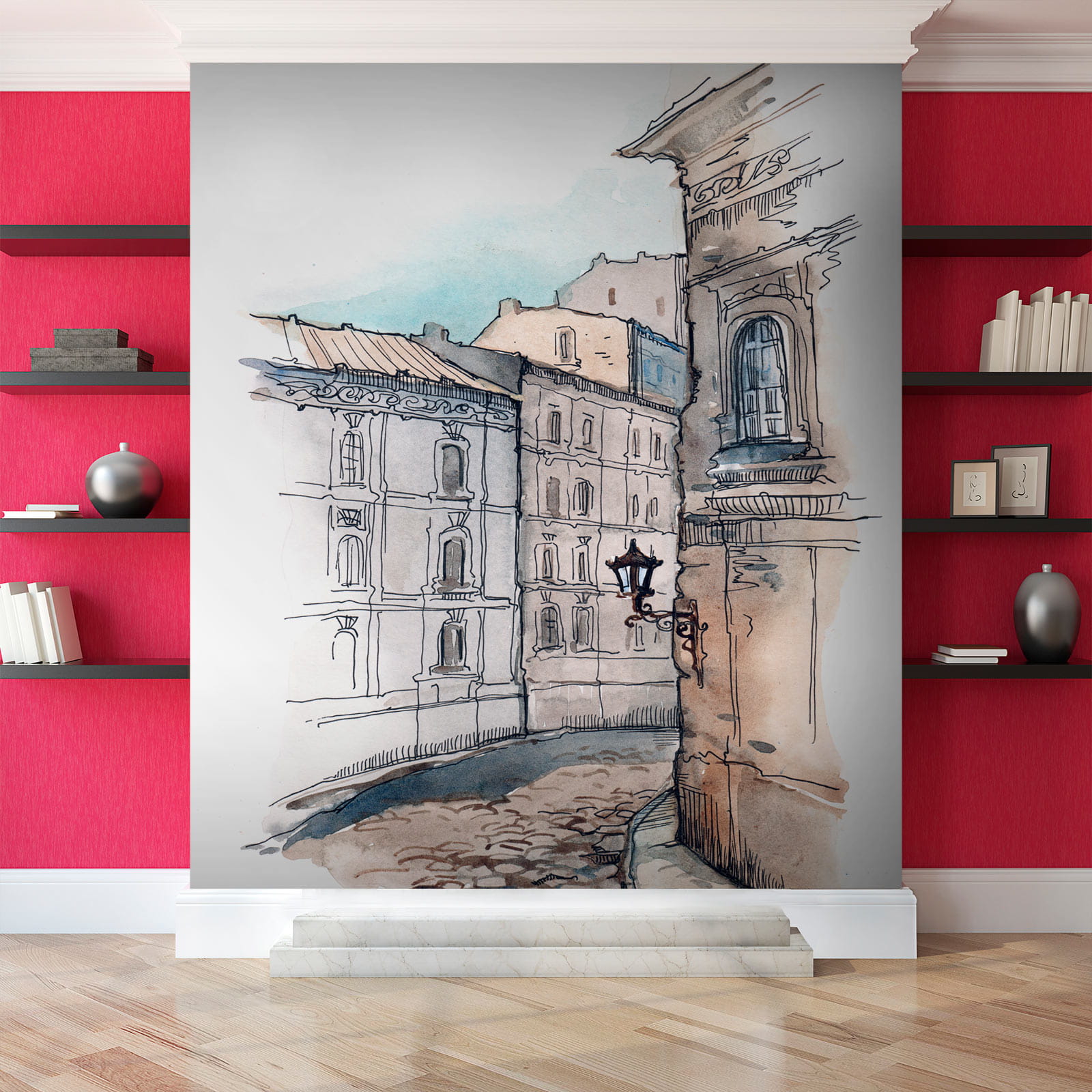 Ach, ten mural jest czymś wyjątkowym, prawda? “Rysunek budynku” ma uroczy urok – jak spokojny spacer po uroczej, brukowanej uliczce w starym europejskim mieście. Akwarelowy styl dodaje delikatnego, nostalgicznego akcentu, prawie tak, jakby sama scena delikatnie szeptała historie z dawnych lat.