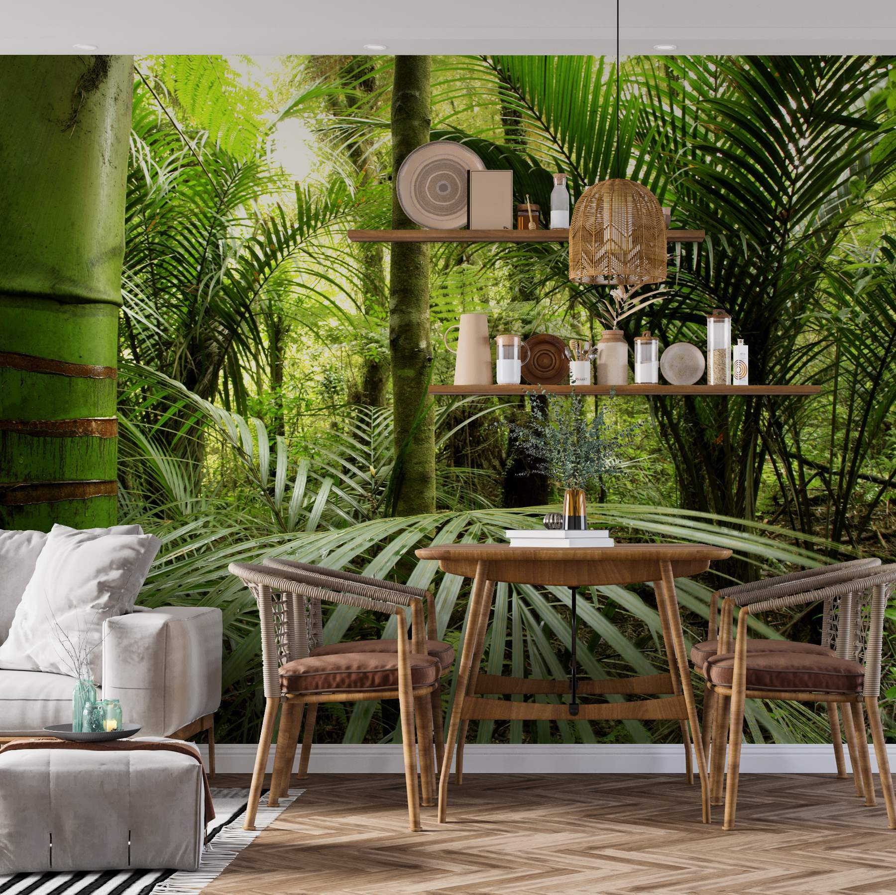 Czy kiedykolwiek marzyłeś o ucieczce do bujnego, zielonego raju bez wychodzenia z salonu? Ta fototapeta ścienna przedstawiająca bujną zieloną dżunglę z palmami właśnie to zrobi. To jak wejście do sekretnego ogrodu, bez konieczności posiadania paszportu. Wyobraź sobie, że popijasz poranną kawę, czując się jak na egzotycznych wakacjach. Zieleń jest tak żywa, że niemal słychać szelest liści i śpiew ptaków. Idealny do stworzenia spokojnego, inspirowanego naturą odosobnienia w każdym pomieszczeniu. Nadaj swojej przestrzeni klimat dżungli – nie potrzebujesz lornetki.