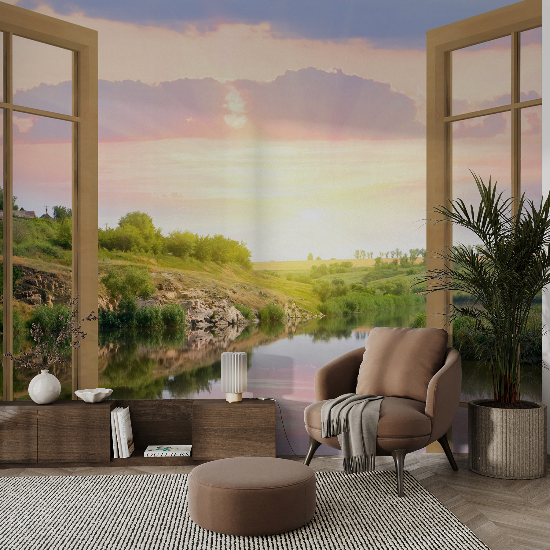 Czy kiedykolwiek marzyłeś o magicznym portalu w swoim domu? Ta fototapeta ścienna “Widok rzeki z okna” jest praktycznie jednym z nich. Wyobraź sobie, że każdego dnia budzisz się z widokiem na tę oszałamiającą scenę – spokojną rzekę płynącą przez bujną zieleń i niebo pomalowane delikatnymi pastelami. To jak ucieczka na łono natury bez opuszczania kanapy. Idealny dla tych, którzy pragną odrobiny spokoju po długim dniu. Twoja przestrzeń będzie bardziej otwarta, jakbyś dodał dodatkowe okno z zawsze uroczym widokiem. I bądźmy szczerzy, kto nie chciałby tej spokojnej, zenowej atmosfery? Idealny do każdego pomieszczenia – salonu, sypialni, biura – jak kto woli!