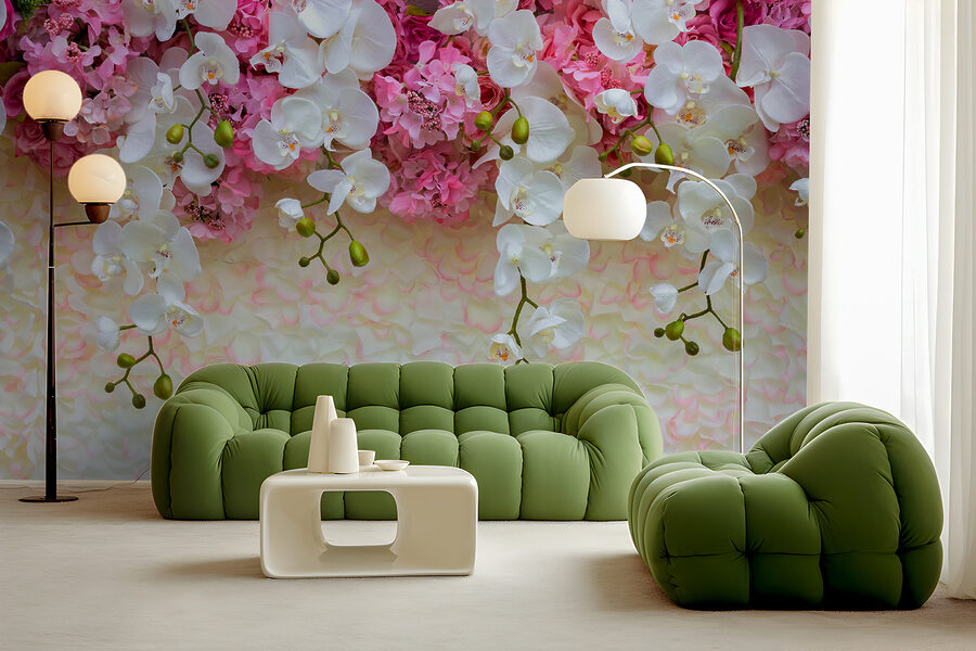 Przekształć swoją przestrzeń w bujną wiosenną przystań dzięki “ściennym orchideom kaskadowo opadającym na różowe kwiaty”. To jak wejście do ogrodu za każdym razem, gdy wchodzisz do pokoju. Te delikatne orchidee rozlewają się po żywych różowych kwiatach, tworząc marzycielski, romantyczny nastrój. Wyobraź sobie poranną kawę z takim widokiem – natychmiastowy poprawiacz nastroju, prawda? To nie tylko fototapeta, to całe doświadczenie. Idealna do dodania odrobiny natury, nawet jeśli jesteś w środku miasta. Idealna do sypialni, salonu, a nawet przytulnego kącika do czytania. Mały kawałek kwiatowego raju bezpośrednio na ścianie.