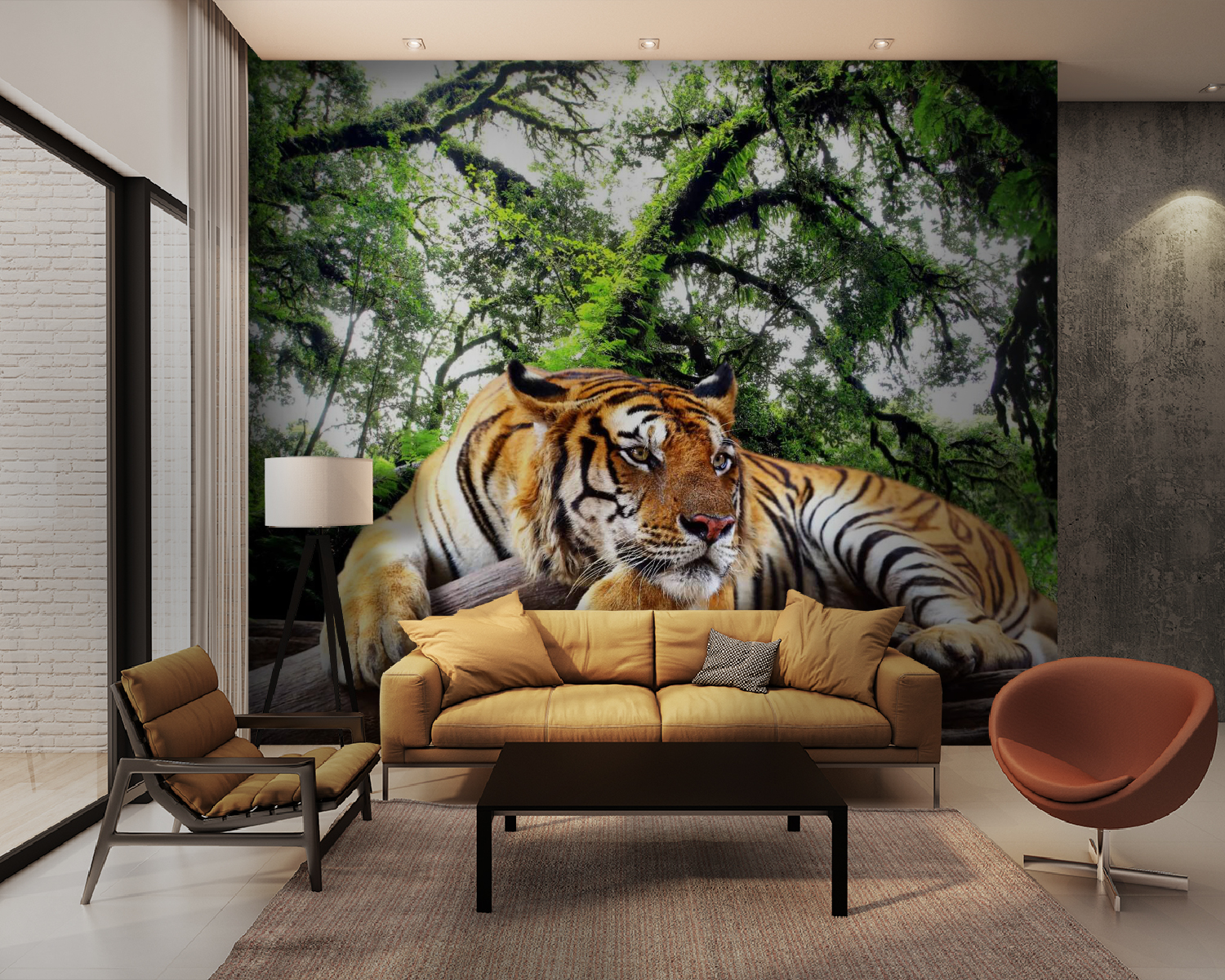 Zmień swoje wnętrze dzięki tej niesamowitej fototapecie „Tygrys leżący na pniu”. Wyobraź sobie, że wchodzisz do pokoju, w którym wylegiwa się majestatyczny tygrys, wprowadzając dziką przyrodę do Twojego domu. Jego żywe paski i przenikliwe spojrzenie tworzą atmosferę, która jest zarówno uspokajająca, jak i pełna przygód – idealna dla marzycieli i miłośników natury. Ta fototapeta przywołuje szept dżungli, sprawiając, że czujesz się, jakbyś dzielił cichą chwilę z tym wspaniałym stworzeniem. To tak, jakbyś miał kawałek tropików na swojej ścianie, budzący zachwyt za każdym razem, gdy na niego spojrzysz. Ponadto jest to świetny temat do rozmów – goście nie będą mogli się powstrzymać przed podzieleniem się swoimi ulubionymi opowieściami o tygrysach!