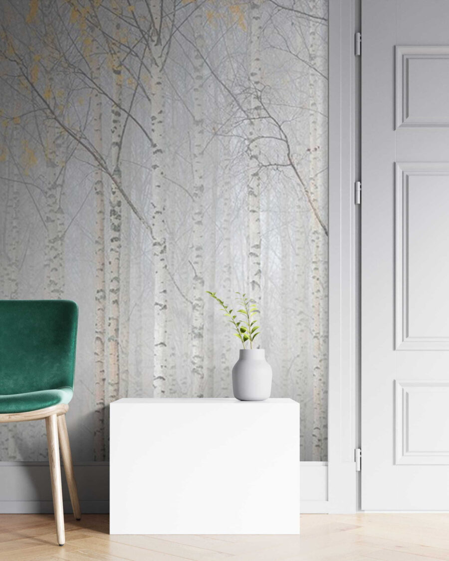 Wyobraź sobie, że wchodzisz do mglistej krainy czarów za każdym razem, gdy wchodzisz do swojego pokoju. Dokładnie to zapewnia fototapeta ścienna “Grupa drzew w mglistym lesie”. Delikatne brzozy stojące cicho we mgle tworzą uspokajającą, senną atmosferę. Idealna na te przytulne, domowe dni z książką i filiżanką herbaty. To jak mały kawałek natury bezpośrednio na ścianie – bez zabłoconych butów. Ta fototapeta dodaje odrobinę spokojnego leśnego uroku do twojej przestrzeni, czyniąc ją zarówno spokojną, jak i ponadczasową. Idealna dla miłośników przyrody lub każdego, kto chce nadać swojemu domowi odrobinę leśnej magii. Niezależnie od tego, czy jest to salon, sypialnia, czy może nawet domowe biuro – sprawi, że wszystko będzie bardziej zaczarowane.