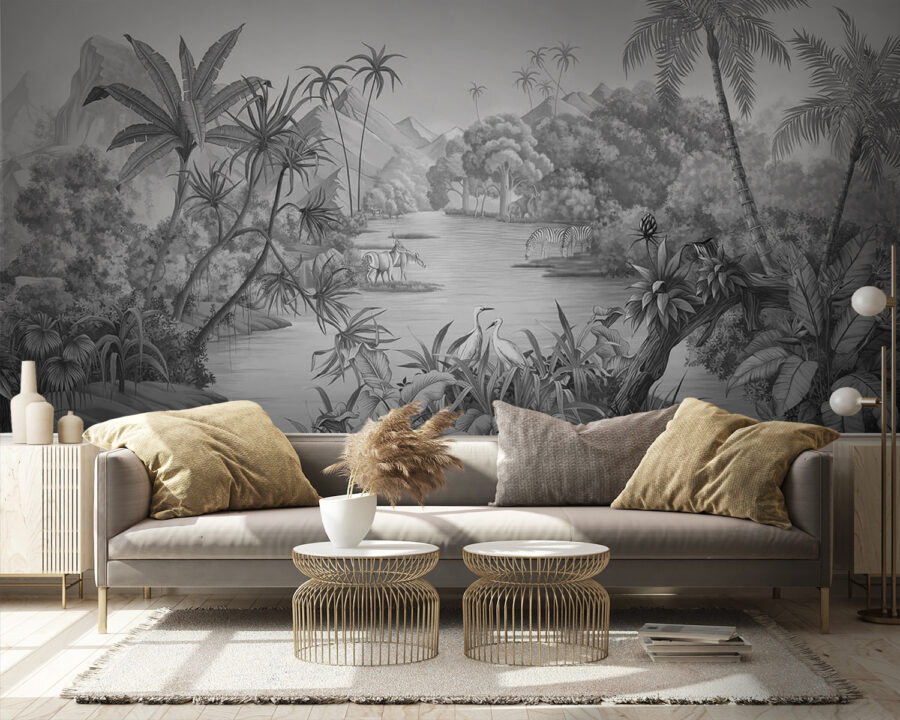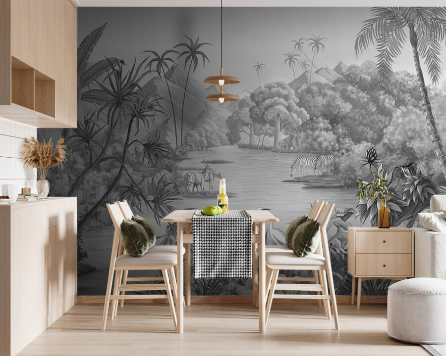 Masz ochotę na przygodę? Ta fototapeta ścienna “Zebras Drinking Water” to coś więcej niż tylko dekoracja – to jak zajrzenie do sekretnej oazy w dżungli. Wyobraź sobie, że popijasz poranną kawę, podczas gdy zebry, te stylowe pasiaste cuda, rozkoszują się spokojnym wodopojem. To nie tylko sztuka, to mini-wakacje od zgiełku. Idealna do dodania odrobiny dzikiej natury do swojej przestrzeni, ta fototapeta łączy bujne wibracje drzew dżungli ze spokojnym urokiem afrykańskiej dzikiej przyrody. Potraktuj ją jako delikatny bodziec dla swojego ducha przygody, bezpośrednio na ścianie – bilet lotniczy nie jest potrzebny!