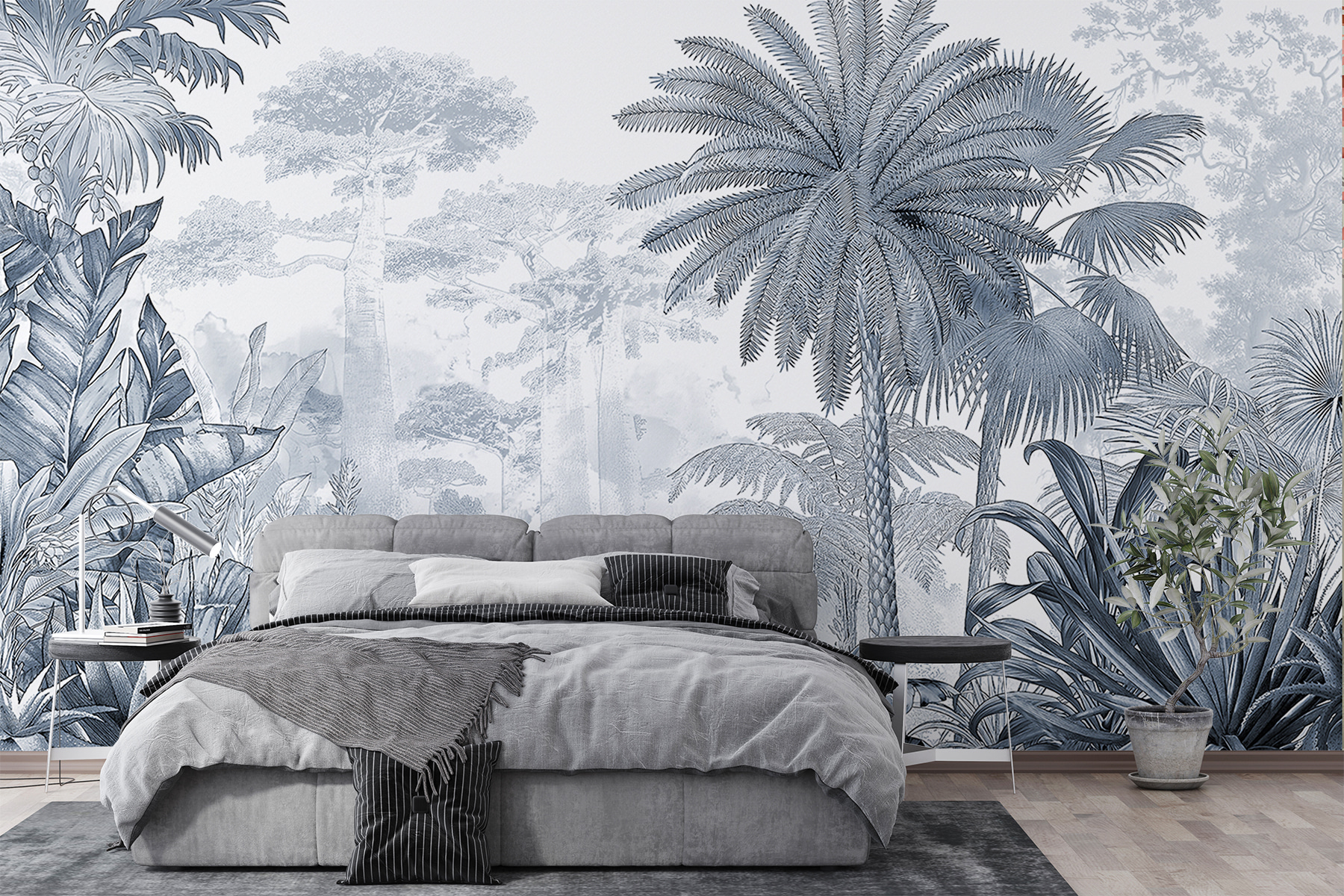 Czy kiedykolwiek chciałeś wprowadzić kawałek dżungli do swojego domu, nie martwiąc się o to, że dzika przyroda się do niego wprowadzi? Ta fototapeta “Tropical Paradise in Delicate Grayscale” może być właśnie tym. Ma bujne, szczegółowe drzewa i rośliny, które w jakiś sposób są zarówno kojące, jak i pełne przygód. Wyobraź sobie, że popijasz poranną kawę z tym tropikalnym widokiem – od razu czujesz się jak na mini wakacjach, prawda?