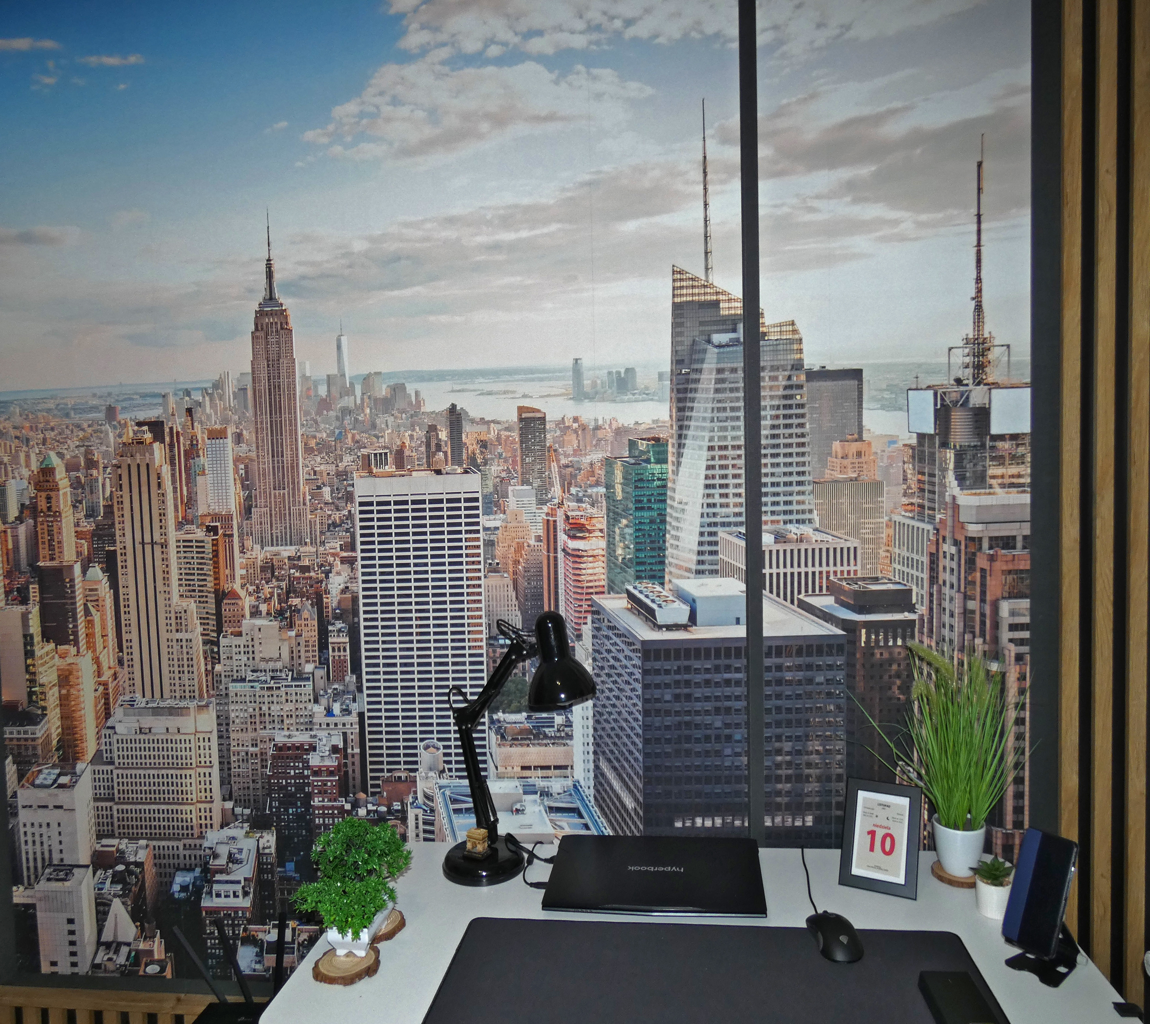 Wyobraź sobie, że codziennie budzisz się z tym widokiem – epicką panoramą bez konieczności wychodzenia z pokoju! “Fototapeta ścienna Widok Skyline przez duże okno” daje poczucie wielkiego miasta, bez zgiełku i pośpiechu. Idealny dla każdego, kto marzy o miejskim życiu lub po prostu uwielbia zabójcze widoki. To tak, jakby mieć penthouse w swoim salonie. Dodatkowo, bez hałasu!