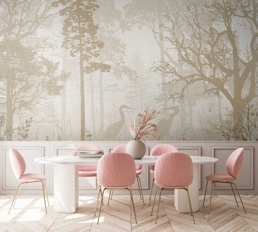 Wyobraź sobie spokojny poranek, w którym czaple spokojnie wędrują przez zamglony las. Ta fototapeta ścienna jest jak delikatny szept natury – idealna do wprowadzenia odrobiny spokoju do każdego pomieszczenia. Jest nastrojowa i tajemnicza, a jednocześnie odświeżająco osobliwa, dzięki czemu wyróżnia się w każdym wystroju. Dzieci uwielbiają go za bajkowy klimat, a dorośli doceniają akwarelową elegancję. Wyobraź sobie tę oszałamiającą, leśną scenę w pokoju dziecięcym lub przytulnym kąciku do czytania – jest jak powiew świeżego powietrza, gdy świat staje się zbyt hałaśliwy.