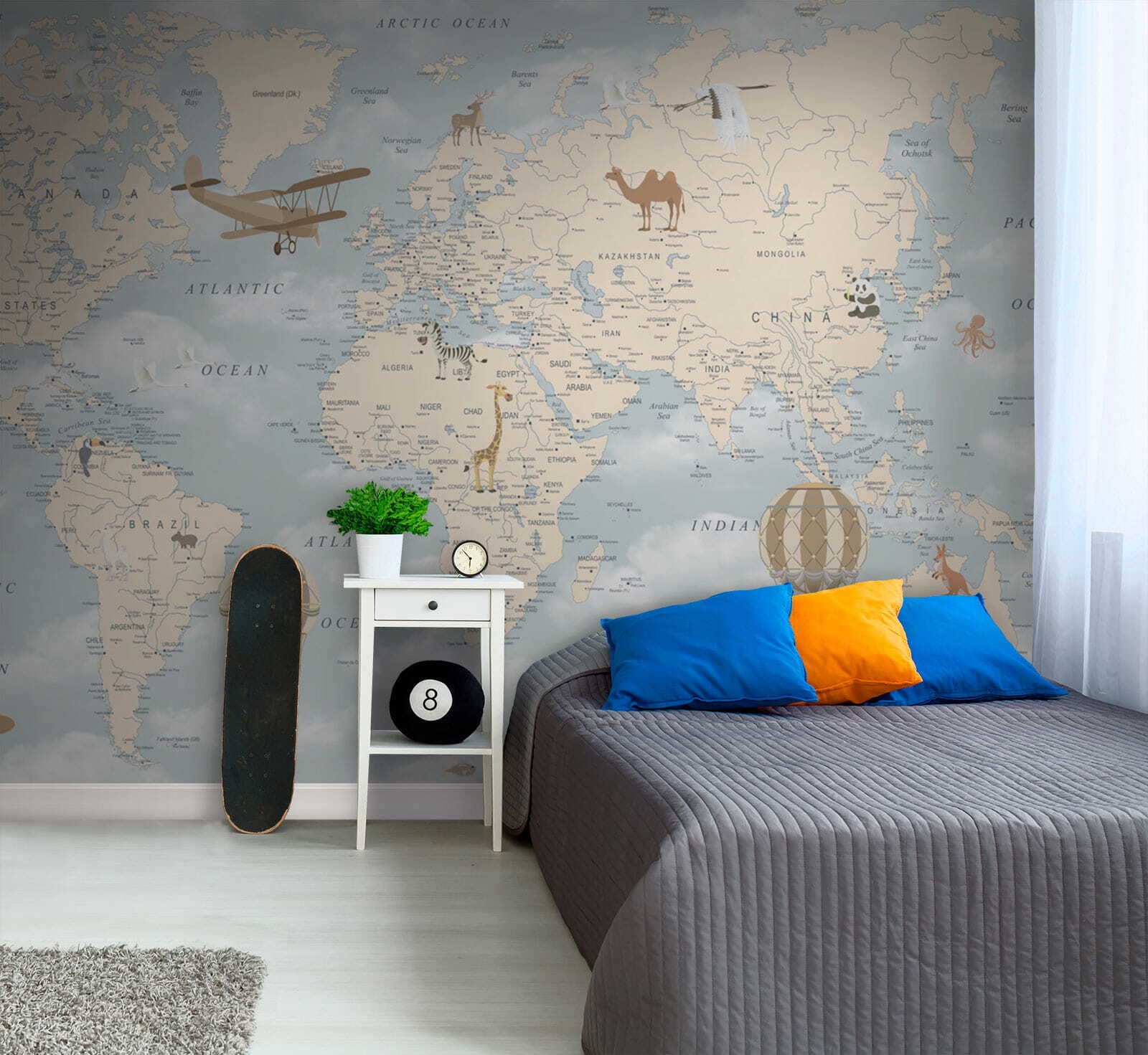 Włączenie tej fototapety do swojej przestrzeni to nie tylko dekoracja; to stworzenie tła dla opowieści i wyobraźni. Pomyśl tylko o swoim dziecku, które śledzi palcami mapę, marzy o przygodach w odległych krainach, a nawet planuje przyszłe podróże. Co więcej, nie jest to tylko zabawa dla dzieci – to świetny początek rozmowy dla każdego, kto wejdzie do pokoju. Czy nie widzisz, jak maluchy wskazują, gdzie znajdują się na mapie lub wymyślają historie o zwierzętach, które zauważyły?