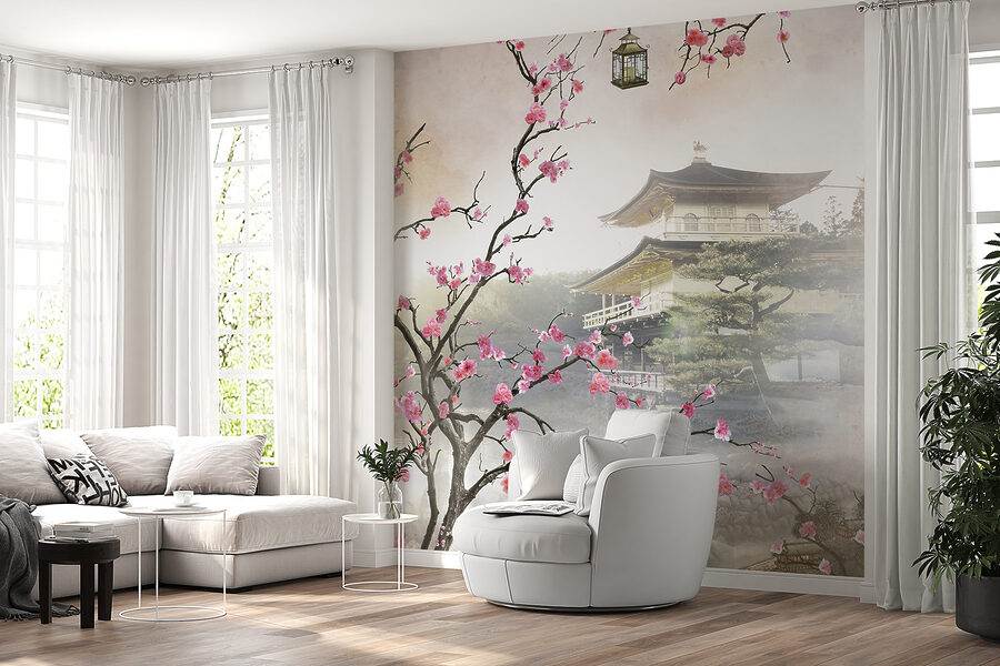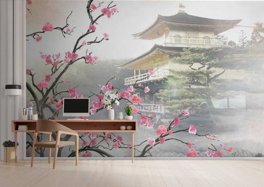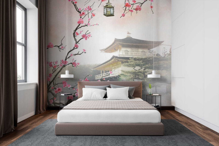 Wyobraź sobie: masz za sobą długi dzień, siadasz na kanapie, a tam jest ta oszałamiająca fototapeta “Kwiaty otaczające spokojną japońską świątynię”. Poczujesz się, jakbyś uciekł do spokojnego ogrodu w połowie świata. Delikatne kwiaty wiśni spływają w dół, otaczając cichą świątynię, która po prostu emanuje spokojem. A te delikatne kolory? Czysta magia. Idealny dla każdego, kto kocha japońską kulturę lub po prostu chce dodać odrobinę zen do swojej przestrzeni.