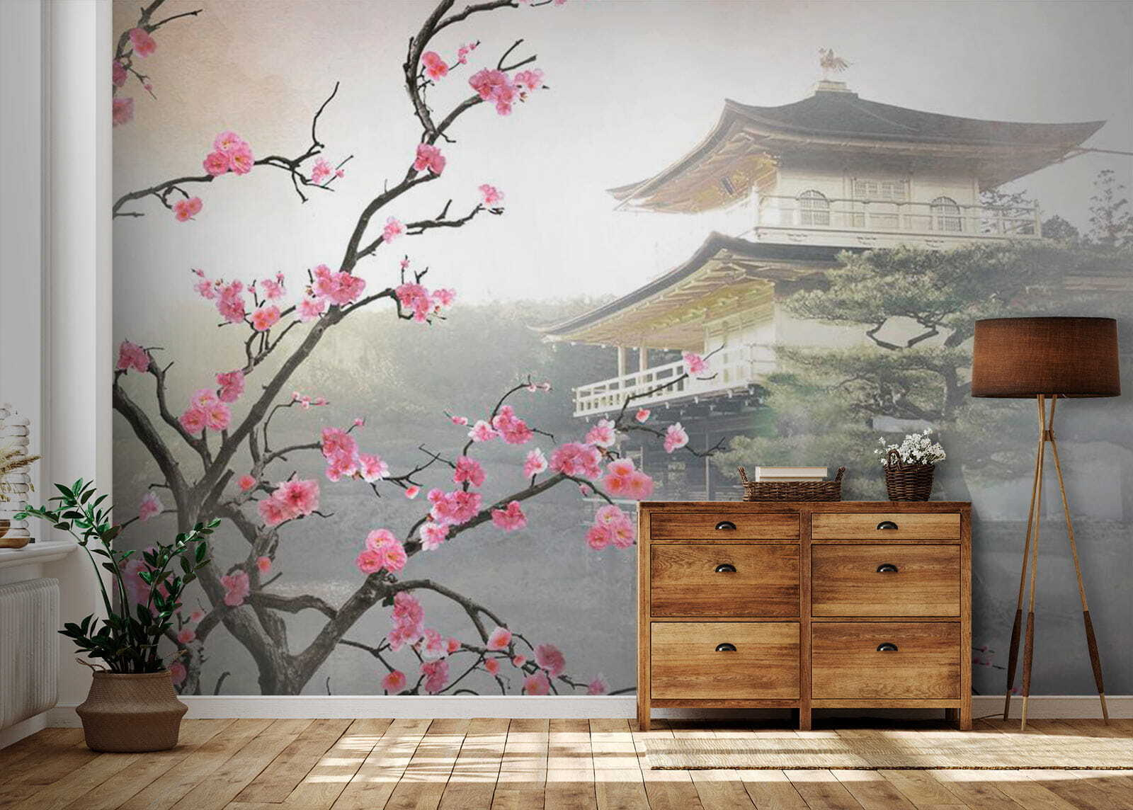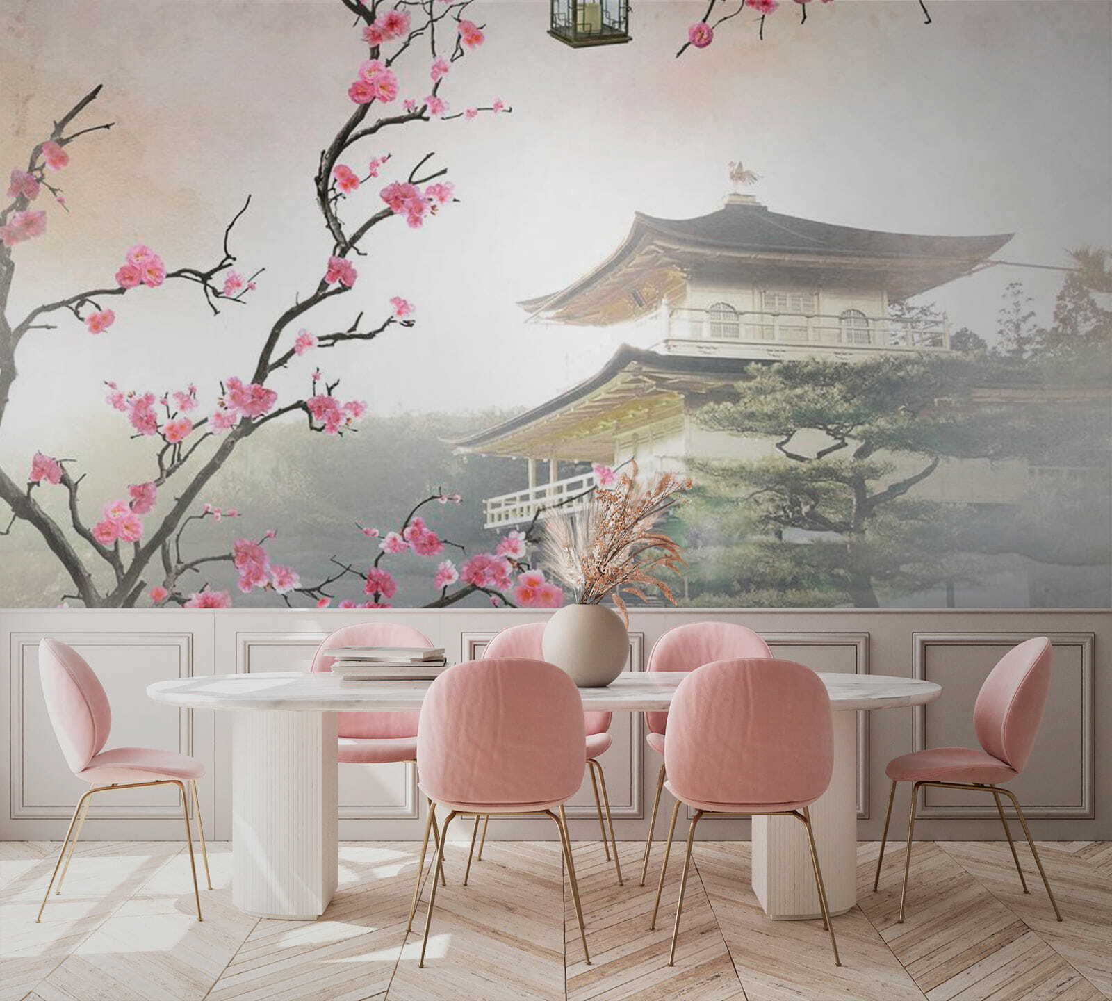 Wyobraź sobie: masz za sobą długi dzień, siadasz na kanapie, a tam jest ta oszałamiająca fototapeta “Kwiaty otaczające spokojną japońską świątynię”. Poczujesz się, jakbyś uciekł do spokojnego ogrodu w połowie świata. Delikatne kwiaty wiśni spływają w dół, otaczając cichą świątynię, która po prostu emanuje spokojem. A te delikatne kolory? Czysta magia. Idealny dla każdego, kto kocha japońską kulturę lub po prostu chce dodać odrobinę zen do swojej przestrzeni.