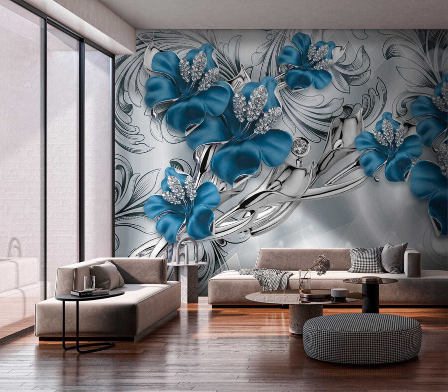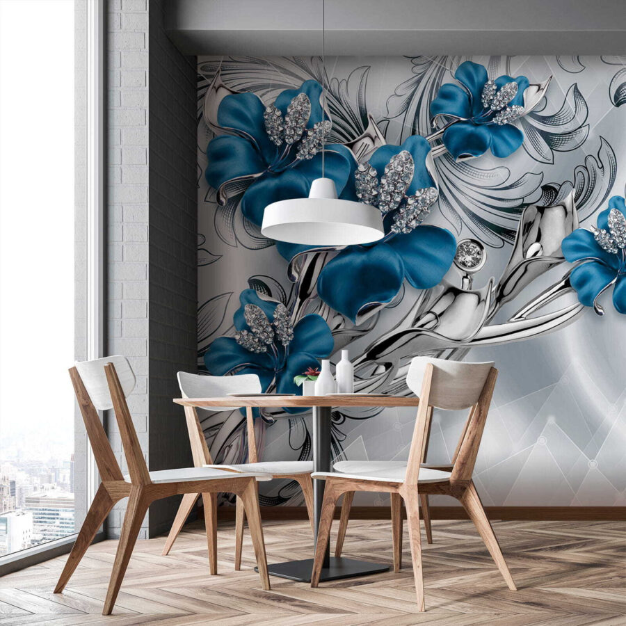 2 opinie dla Fototapeta Ozdobne niebieskie kwiaty z kryształkami