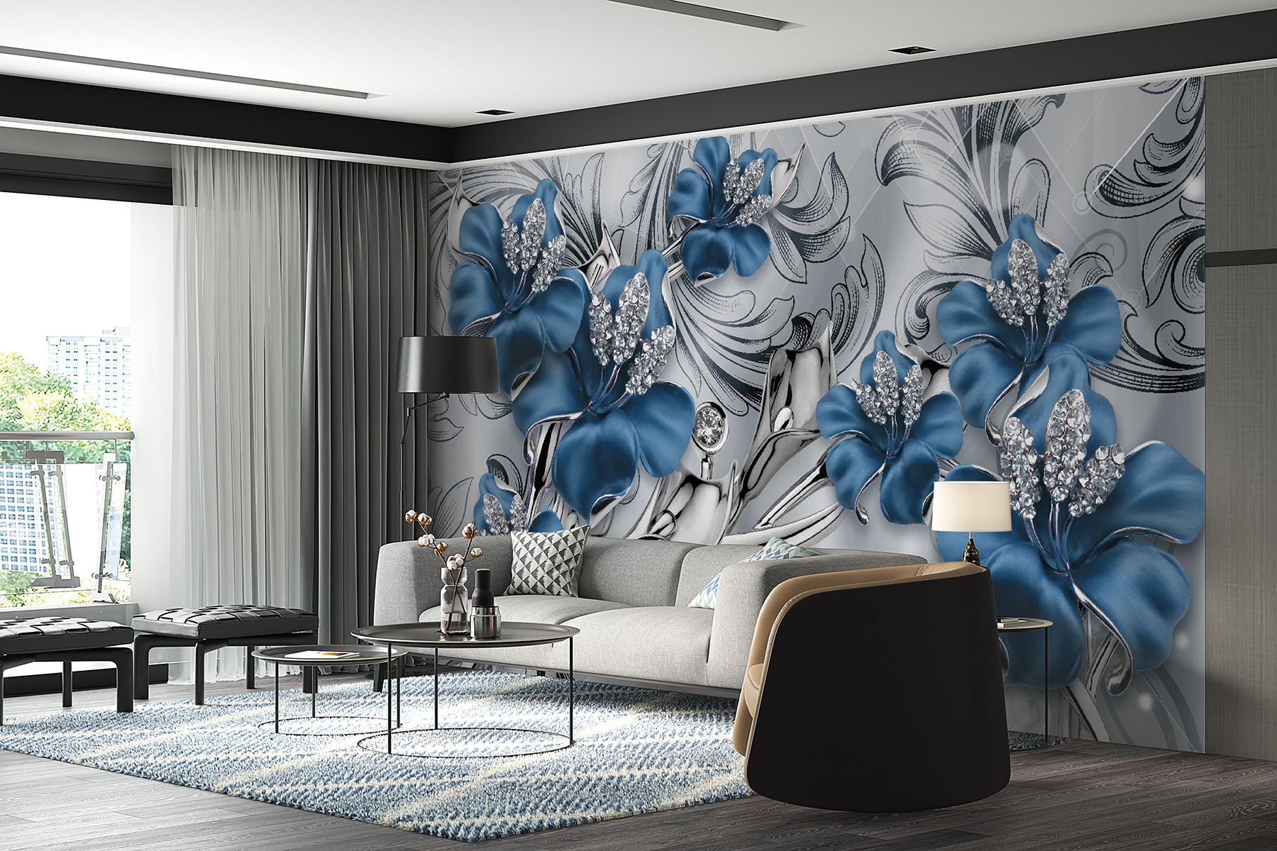 2 opinie dla Fototapeta Ozdobne niebieskie kwiaty z kryształkami