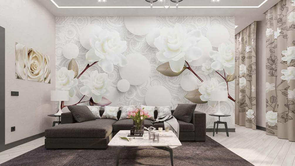 Transform any room into a serene escape with the “Wall Murals White Flowers and Circles on a White Background.” Imagine stepping into your space and being greeted by delicate white roses gracefully dancing among soft, subtle circles. It’s like bringing a piece of a tranquil garden right inside, where every glance feels refreshing and uplifting.