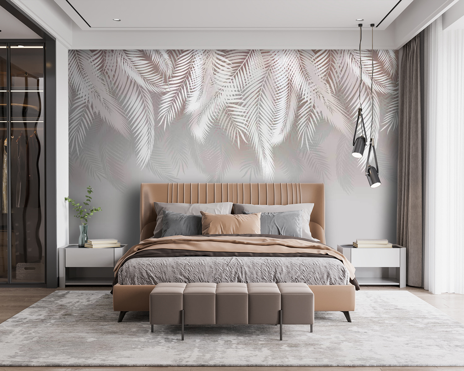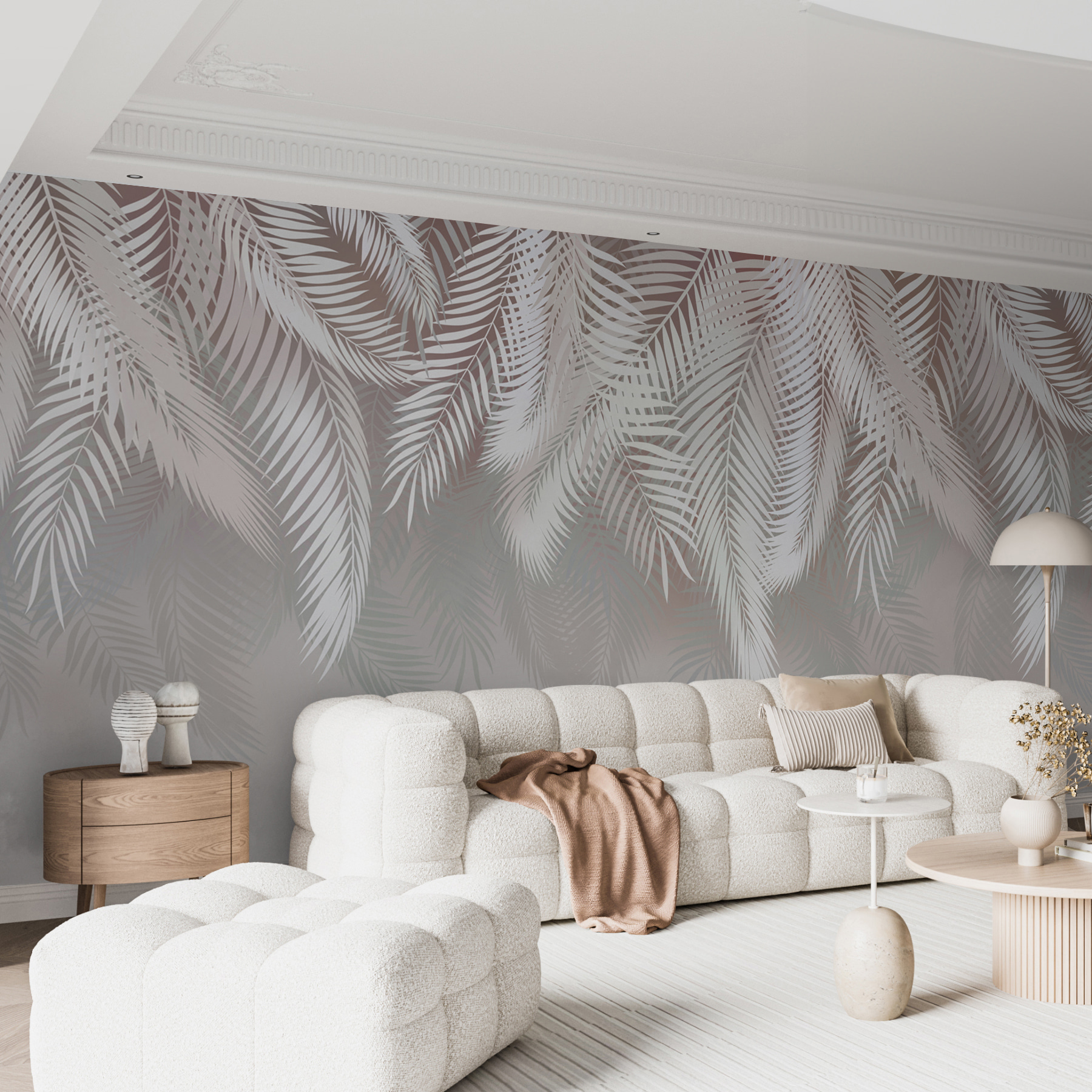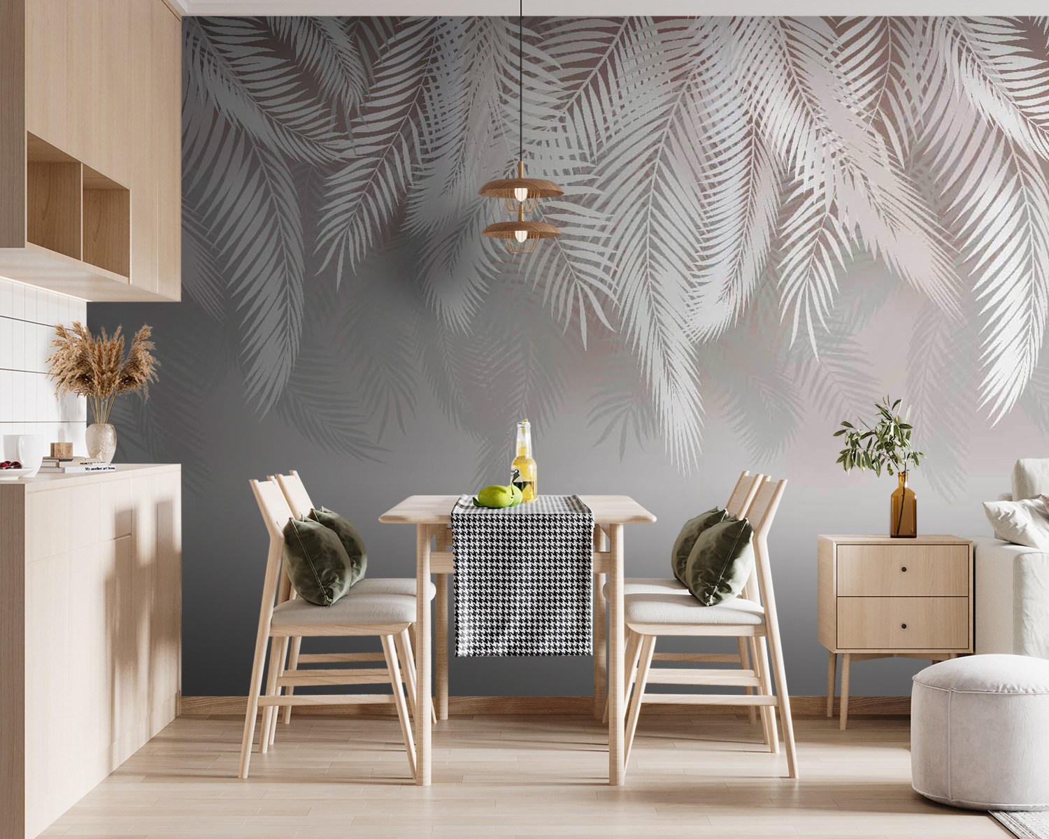 Chcesz ożywić pokój bez większego zamieszania? Sprawdź te białe liście palmowe na beżowym tle – to jak wniesienie odrobiny tropików do swojego domu! Ta fototapeta jest bardzo uspokajająca, jak delikatny szum liści palmowych na delikatnym wietrze. Wyobraź sobie, że wracasz do domu po długim dniu; z tą fototapetą na ścianie prawie spodziewałbyś się usłyszeć ocean w tle.