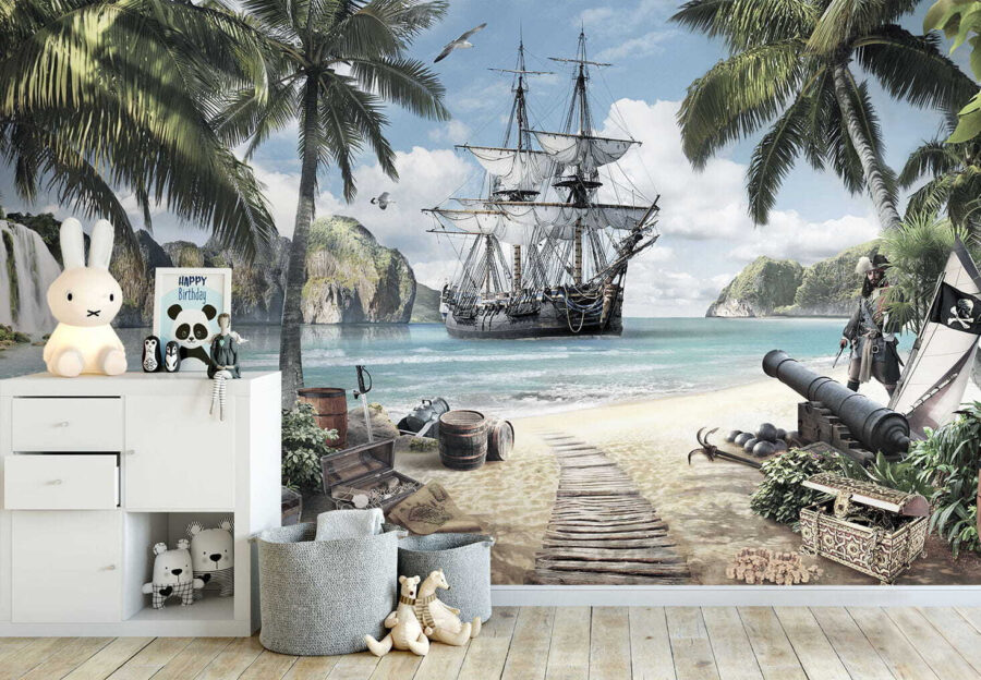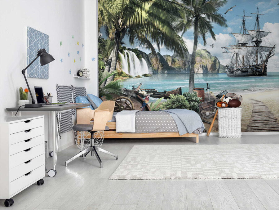 Przekształć dowolną przestrzeń w skąpany w słońcu raj dzięki fototapecie ściennej “Statek piracki zakotwiczony w tropikalnym raju”. Wyobraź sobie, że wkraczasz do świata, w którym morska bryza delikatnie muska twoją twarz, a żywe palmy kołyszą się nad tobą. Ta fototapeta ożywia oszałamiającą scenę – pełen przygód statek piracki zacumowany w pobliżu krystalicznie czystych wód, otoczony skarbami i bujną przyrodą. Dzieci poczują się, jakby były częścią awanturniczej przygody, odkrywając ukryte skarby i tajemnicze wyspy. To coś więcej niż tylko wystrój; to iskra kreatywności, inspirujące historie i niekończące się marzenia. Kto nie chciałby odpłynąć za każdym razem, gdy spojrzy na swoją ścianę? Idealna do pokoju zabaw lub sypialni, ta fototapeta tworzy uroczą ucieczkę, która z pewnością wywoła uśmiech na twarzy każdego. Pozwól wyobraźni odpłynąć!