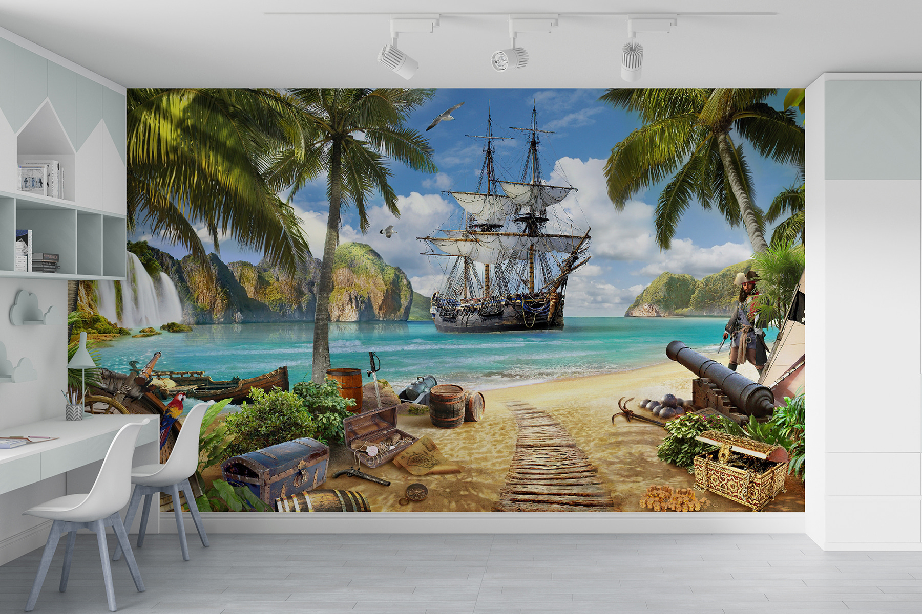Przekształć dowolną przestrzeń w skąpany w słońcu raj dzięki fototapecie ściennej “Statek piracki zakotwiczony w tropikalnym raju”. Wyobraź sobie, że wkraczasz do świata, w którym morska bryza delikatnie muska twoją twarz, a żywe palmy kołyszą się nad tobą. Ta fototapeta ożywia oszałamiającą scenę – pełen przygód statek piracki zacumowany w pobliżu krystalicznie czystych wód, otoczony skarbami i bujną przyrodą. Dzieci poczują się, jakby były częścią awanturniczej przygody, odkrywając ukryte skarby i tajemnicze wyspy. To coś więcej niż tylko wystrój; to iskra kreatywności, inspirujące historie i niekończące się marzenia. Kto nie chciałby odpłynąć za każdym razem, gdy spojrzy na swoją ścianę? Idealna do pokoju zabaw lub sypialni, ta fototapeta tworzy uroczą ucieczkę, która z pewnością wywoła uśmiech na twarzy każdego. Pozwól wyobraźni odpłynąć!