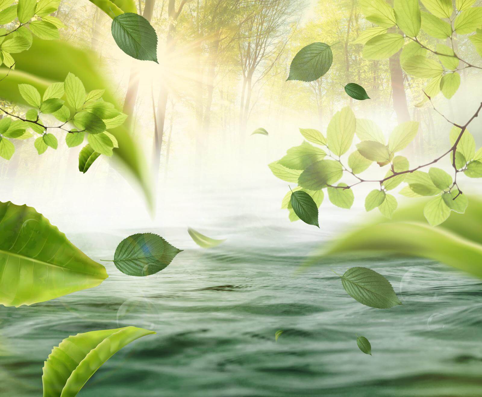 Fototapeta Fototapeta Woda z liśćmi unoszącymi się w powietrzu (SKU: u62860)