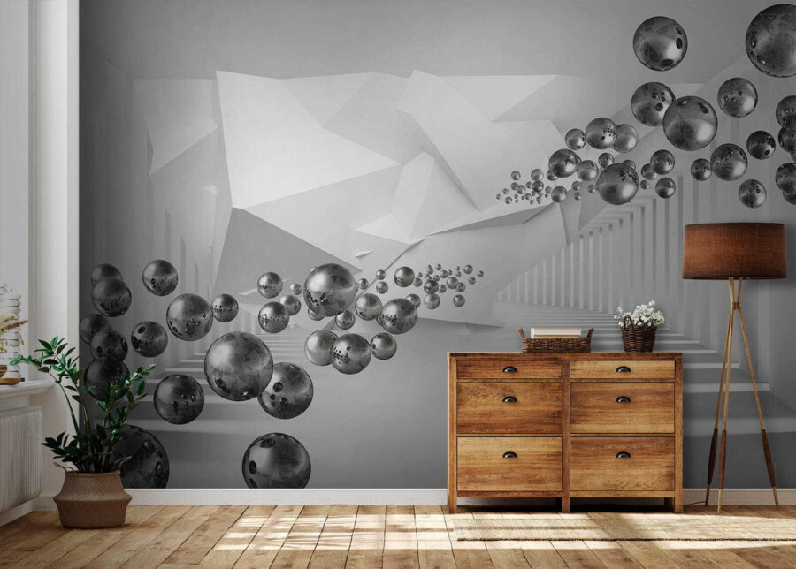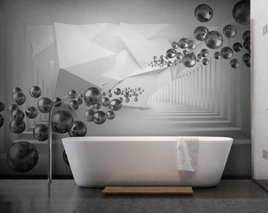 Wejdź na wizualny plac zabaw z fototapetą “Floating Spheres in Geometric Corridor”, gdzie kreatywność zajmuje centralne miejsce. Wyobraź sobie spacer przez senne królestwo kapryśnych kul i ostrych kątów, tworząc zachwycający taniec głębi i intrygi. To jak przebywanie w labiryncie, gdzie każdy zakręt przynosi nową niespodziankę. Elegancka, nowoczesna atmosfera jest idealna do każdej przestrzeni, pobudzając inspirację, niezależnie od tego, czy jest to przytulne domowe biuro, czy tętniący życiem salon. Znajomi będą zerkać z zaciekawieniem, pytając, co magicznego dzieje się na twoich ścianach. To nie tylko wystrój; to doświadczenie!