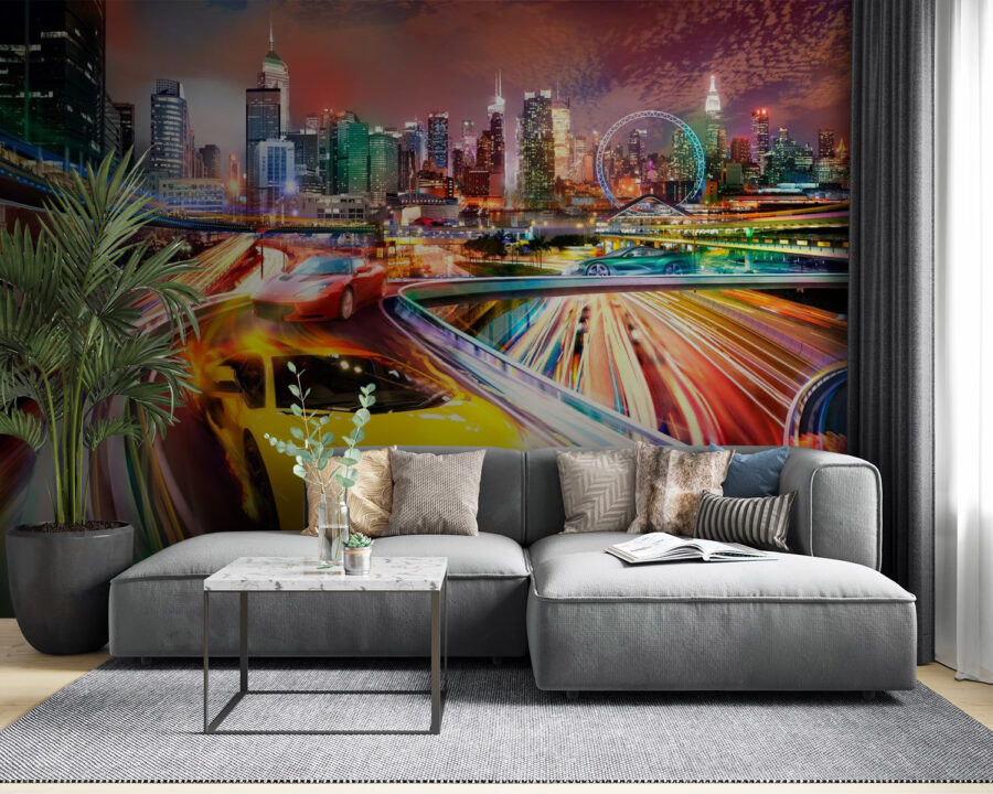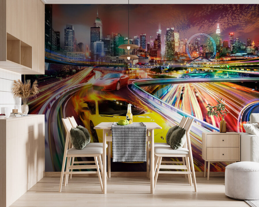 Czy kiedykolwiek marzyłeś o ściganiu się ulicami miasta w oszałamiającym czerwonym samochodzie sportowym? Ta fototapeta w pełni oddaje ten dreszczyk emocji! Wyobraź sobie, że wchodzisz do swojego salonu lub męskiej jaskini, czując przypływ adrenaliny przy każdym spojrzeniu. Żywe światła miasta i elegancki design samochodu sprawiają, że czujesz się, jakbyś był na pasie szybkiego ruchu – bez mandatów za przekroczenie prędkości. Idealny dla entuzjastów samochodów lub każdego, kto kocha miejskie przygody. To coś więcej niż fototapeta; to kawałek szybkich emocji bezpośrednio na ścianie. Przekształć swoją przestrzeń w centrum energii i stylu – to jak przeniesienie wyścigu do Ciebie!