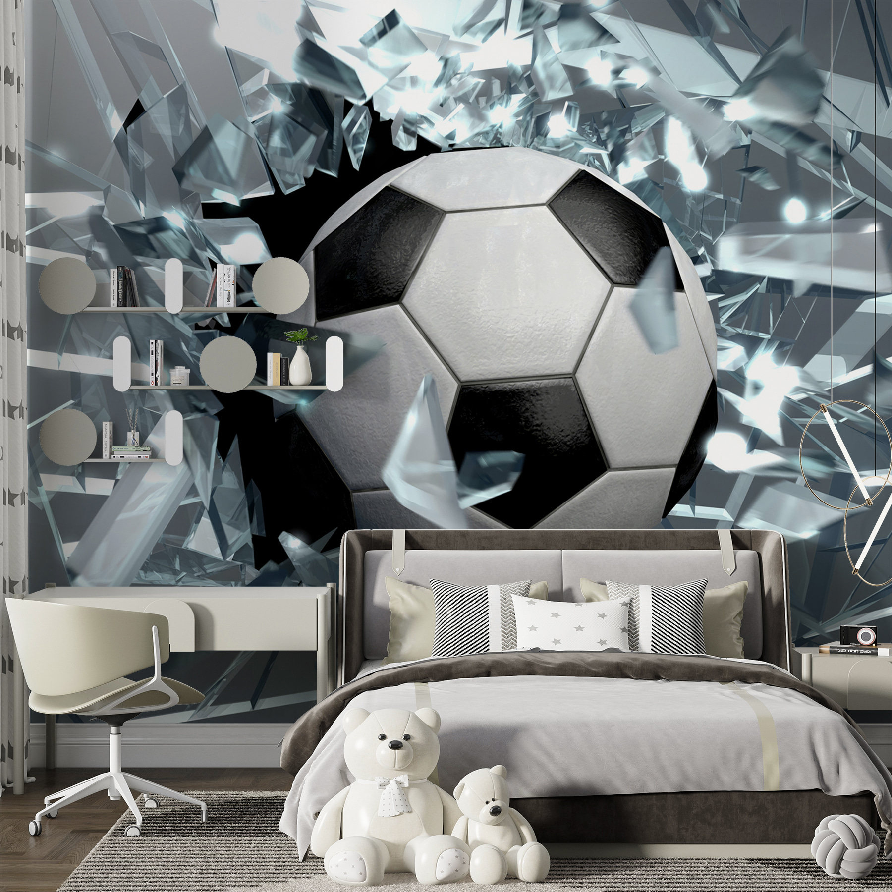 Przekształcając pokój w tętniącą życiem przygodę, ta fototapeta przenosi ekscytującą energię piłki nożnej wprost na twoją ścianę. Wyobraź sobie silną piłkę nożną przebijającą się przez wyimaginowaną barierę, odłamki szkła wywołujące żywą atmosferę. To tak, jakby twoja przestrzeń właśnie zdobyła ostateczną bramkę, dzięki czemu jest idealna dla dzieci, które marzą o zostaniu supergwiazdami na boisku. Wyobraź sobie – przyjaciele przychodzą, oczy się rozszerzają, a pytania lecą. Które dziecko nie poczułoby się jak mistrz dzięki tej dynamicznej scenie? To coś więcej niż tylko dekoracja; to inspiracja, ekscytacja i mnóstwo zabawy!