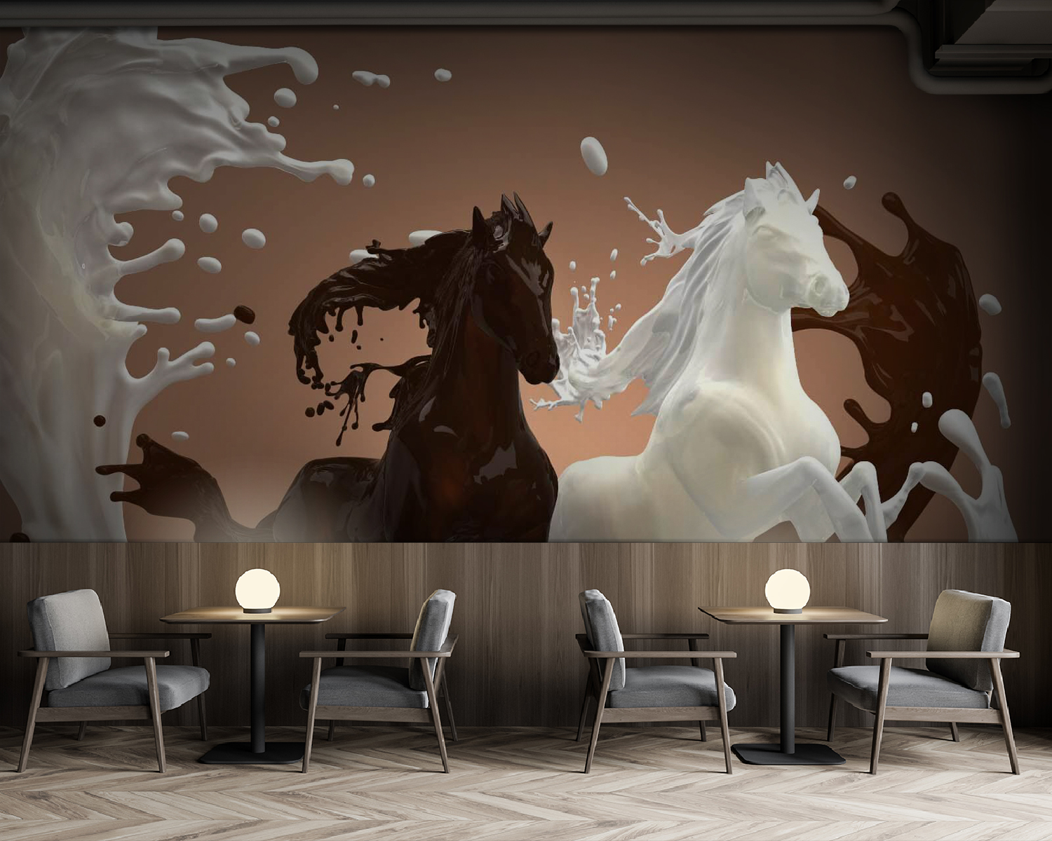 Zanurz się w świecie fantazji dzięki fototapecie „Koń w mlecznej mgle”. Wyobraź sobie dwa wspaniałe konie – jeden ciemny, drugi jasny – galopujące przez kremową mgłę, jakby brały udział w epickim wyścigu. To nie tylko fototapeta, to prawdziwa deklaracja.